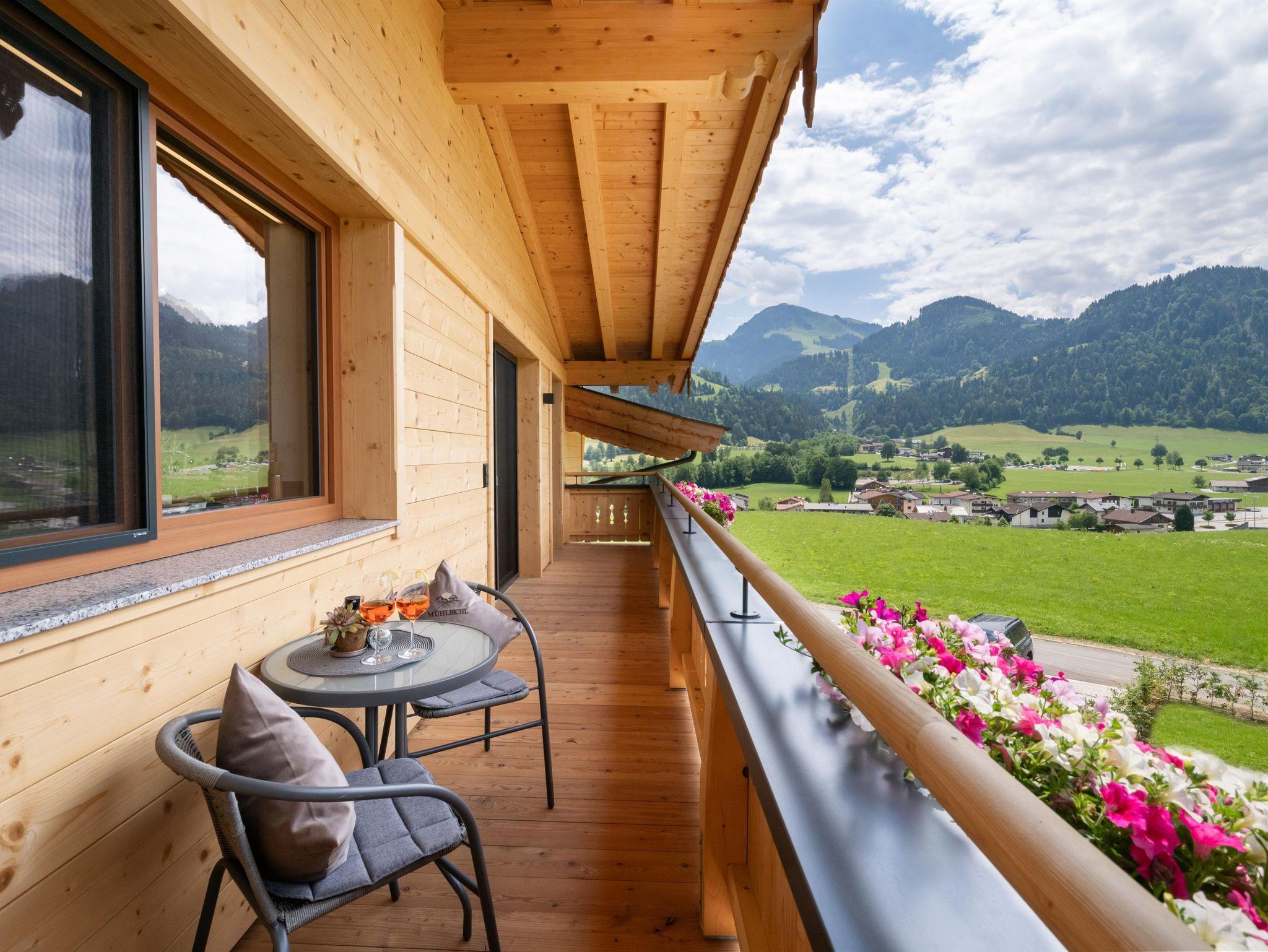 Unser neu errichteter Hof Mühlbichl steht wie der Name schon sagt auf einem Bichl – (Anhöhe) zentrumsnahe , in einer sehr sonnigen und ruhigen Lage vor der wunderschönen Kulisse des Wilden Kaisers.