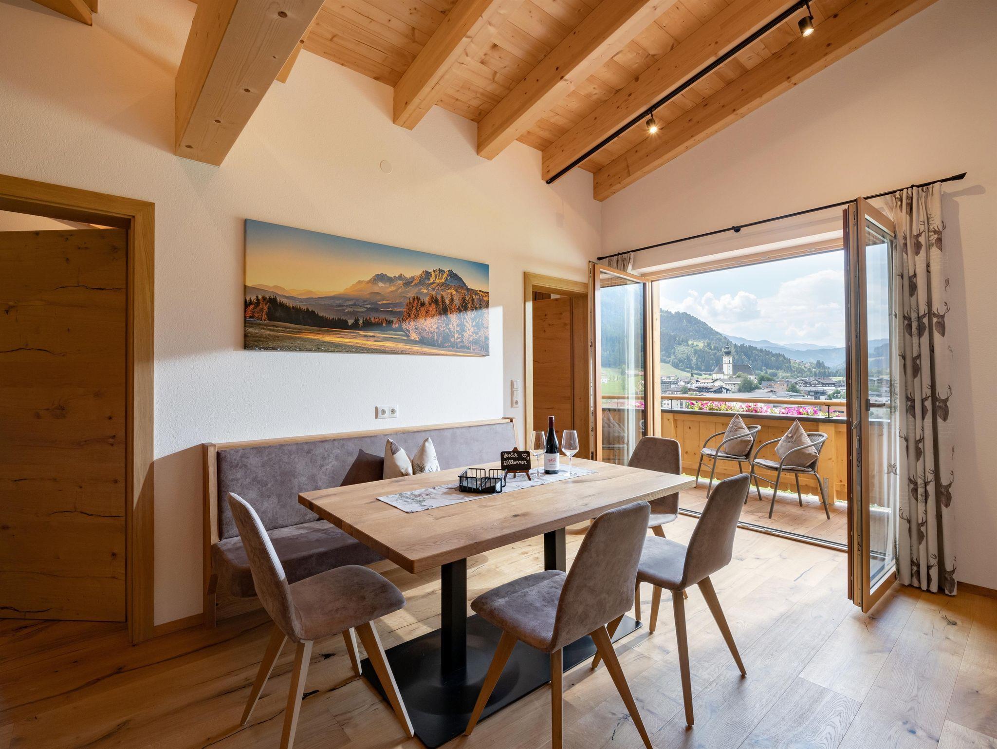 Unser Apartment Dorfstadl befindet sich im 2. Obergeschoss unseres neu erbauten Wohnhauses. Das Apartment befindet sich wie der Name schon verrät auf der einen Seite des Hauses mit wunderschönen Blick auf unser Dorfzentrum Söll so zu sagen über den Dächern von Söll.