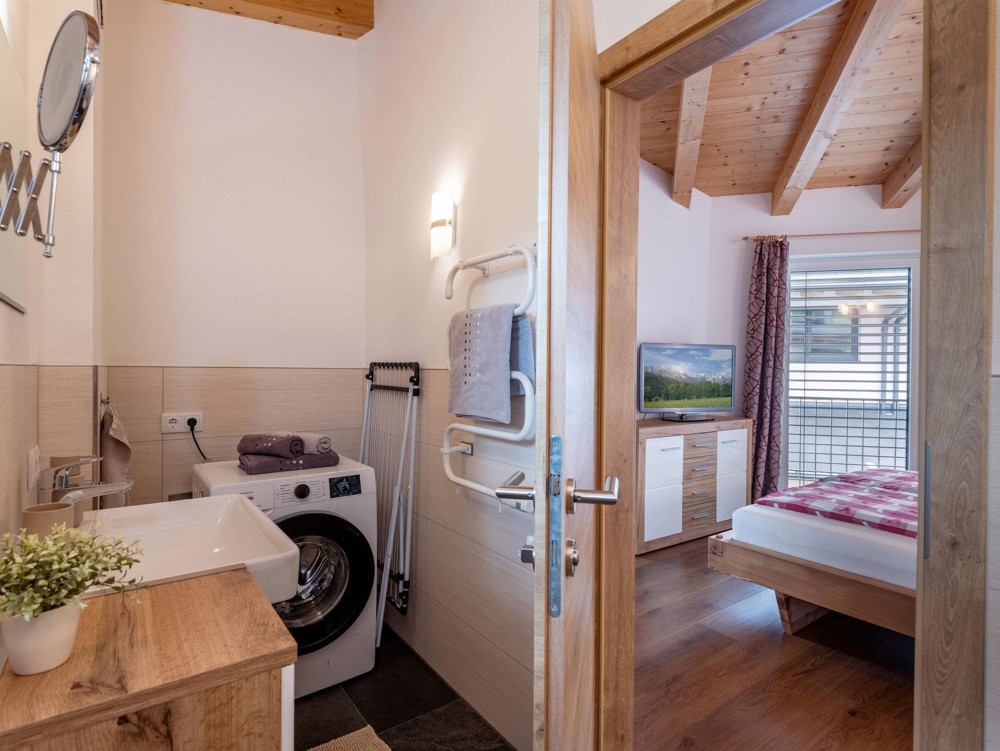Unsere 2019 errichtete Ferienwohnung (ca. 62m²) besteht aus 2 Schlafzimmern (Doppelbett, 1,90 m Stockbetten), vollausgestattete Wohnküche, diese verfügt über ein gemütliches und ausziehbares Sofa, 2 Fernseher, Geschirrspüler, Kühl- und Gefrierschrank, Dusche/WC und separates WC, Garderobe, in der ganzen Wohnung Fußbodenheizung, (nachhaltiges Heizsystem), Balkon, eigene Terasse mit Garten. Gratis WLAN. Sie können einen wunderbaren Blick auf die umliegenden Berge und das Bergdoktorhaus genießen.