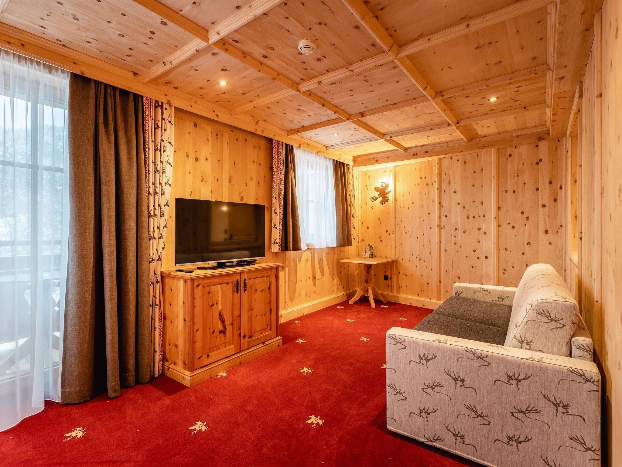 Wohlfühlzimmer Hexenzirbe Ausstattung mit echtem Zirbenholz auf ca. 24 m², Badezimmer mit Dusche und WC, Haarfön, Zimmersafe, TV, Telefon, W-Lan