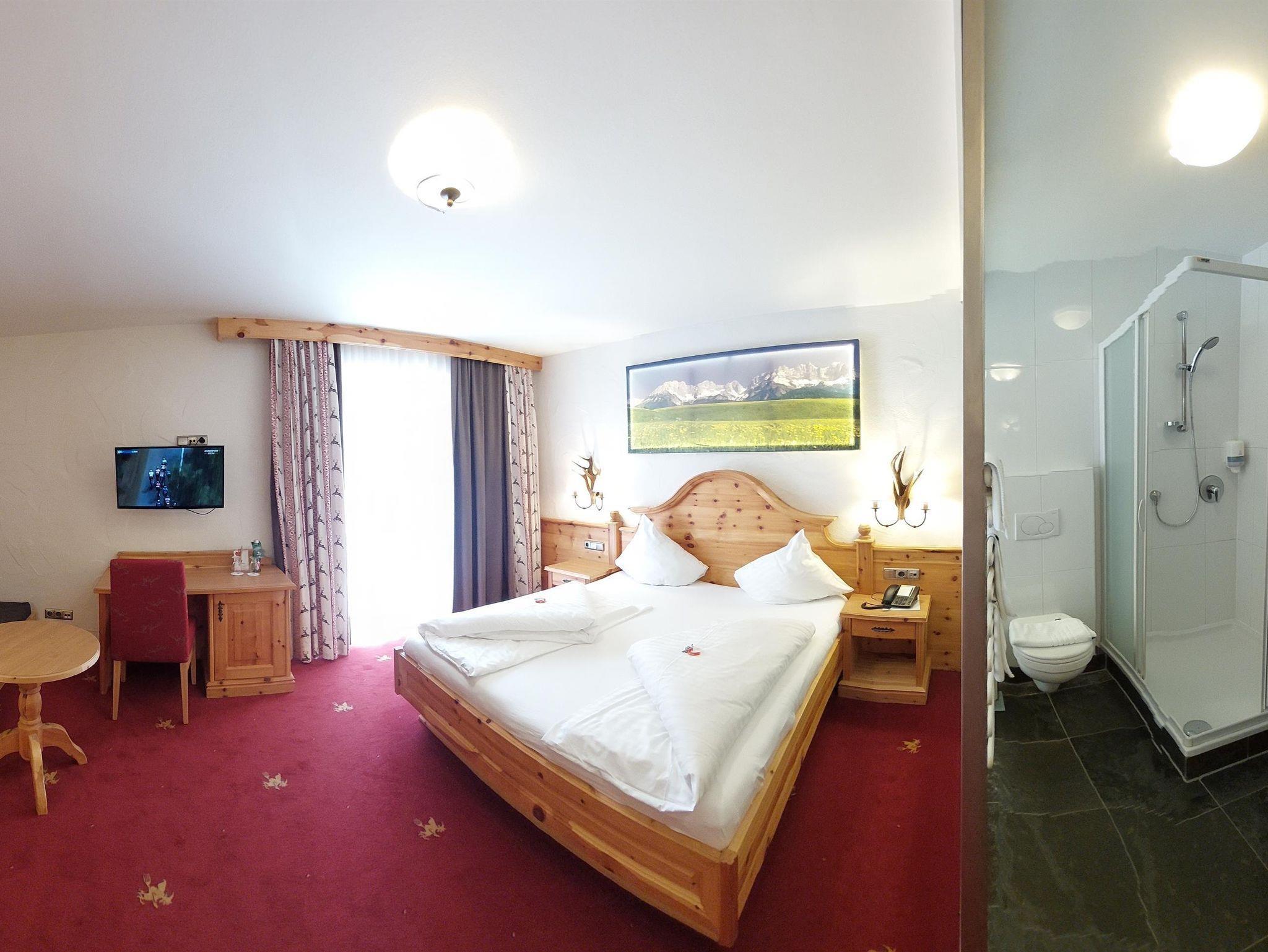 Ausstattung mit echtem Zirbenholz, Badezimmer mit Dusche und WC, Haarfön, Zimmersafe, TV, Telefon, W-Lan