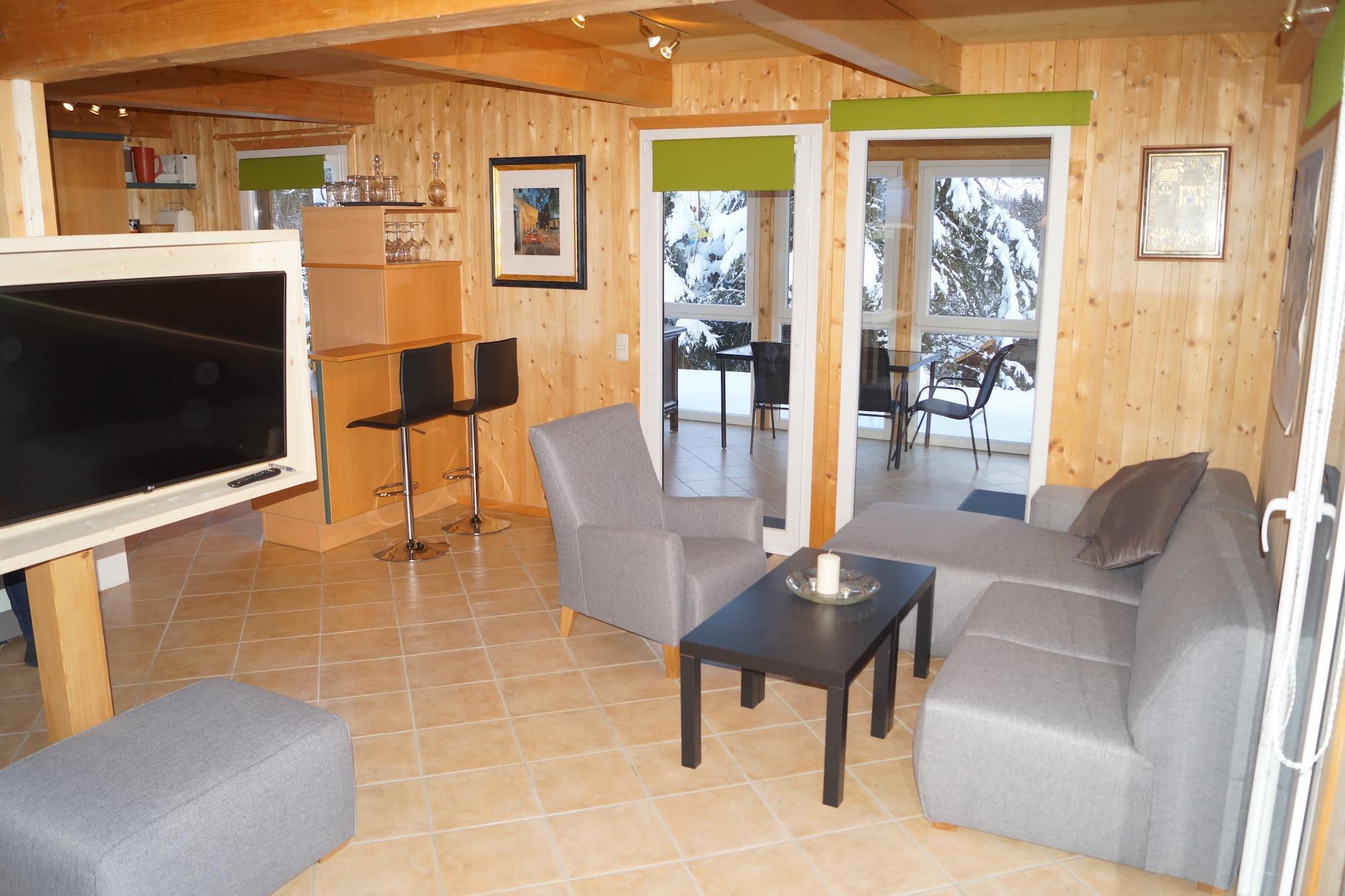 Parterre: (Wohnzimmer(TV, Gasofen), offene Küche(Wasserkocher, Toaster, Kochherd(Ceranfeld), Kaffeemaschine(Filter), Backofen, Spülmaschine, Kühl-/Gefrierkombination, ()), Badezimmer(Dusche, Waschbecken, Toilette, Föhn)) In der 1. Etage: (Schlafzimmer(Doppelbett), Schlafzimmer(Doppelbett), Schlafzimmer(2x Einzelbett), Schlafzimmer(Einzelbett, Doppelbett), Badezimmer(Badewanne mit Dusche, Waschbecken, Toilette)) Abstellraum, Babybett, Waschmaschine, Skischuhheizung, Terrasse, Parkplatz, Kinderbett, Hochstuhl, Hochstuhl
