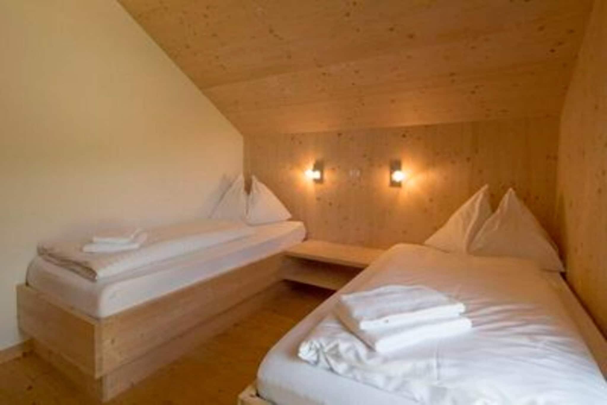 Parterre: (Wohnzimmer(TV(Satellit), Gasofen), offene Küche(TV, Wasserkocher, Toaster, Kochherd(Ceranfeld), Kaffeemaschine(Espresso, Filter), Backofen, Mikrowelle, Spülmaschine, Kühl-/Gefrierkombination, ()), Badezimmer(Dusche, Sauna, Waschbecken), Toilette(Toilette), Abstellraum(Skischuhheizung), Internet) In der 1. Etage: (Schlafzimmer(Doppelbett), Schlafzimmer(Doppelbett, Etagenbett), Schlafzimmer(Doppelbett), Schlafzimmer(2x Einzelbett), Badezimmer(Badewanne mit Dusche, 2x Waschbecken, Toilette)) Babybett, Whirlwanne(im Garten), Waschmaschine, Heizung(elektrisch, Zentral), Terrasse, Garten, Grill, Parkplatz, Hochstuhl