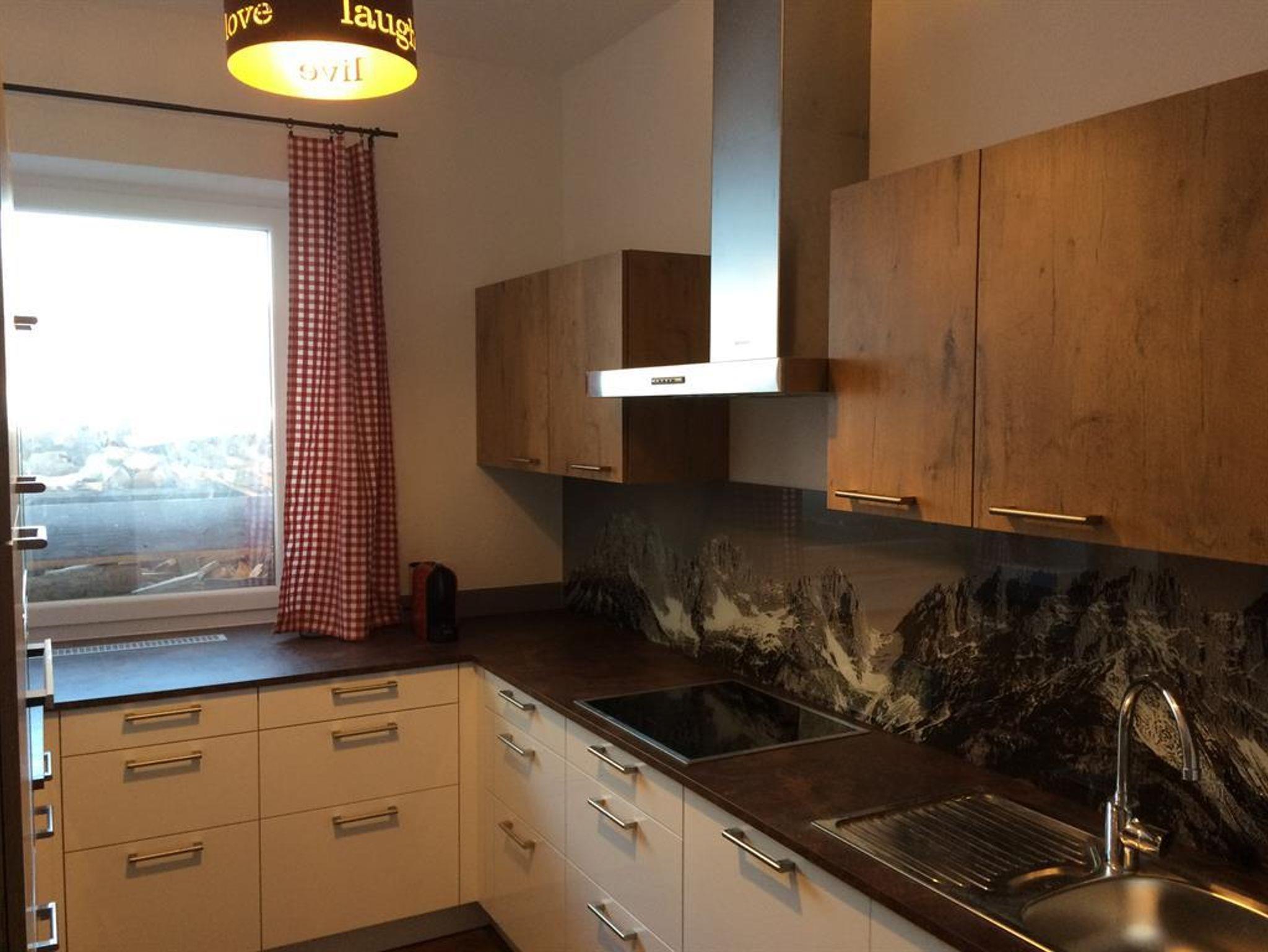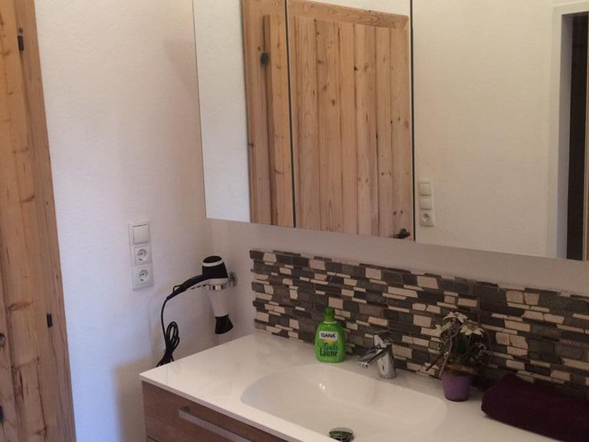 Es ist modern und im Tiroler Styl eingerichtet mit schönen hellen Parkettholzböden, Altholztüren & 2 Zirbenholz Schlafzimmern mit eigenen Bad/WC, Großes Wohnzimmer mit Couch (ausziehbar) u. Büffel-Leder Essecke und Designer Küche kompl. eingerichtet (Geschirrspüler usw.), Vorratsraum, Garderrobe und Sitzecke vor dem Haus