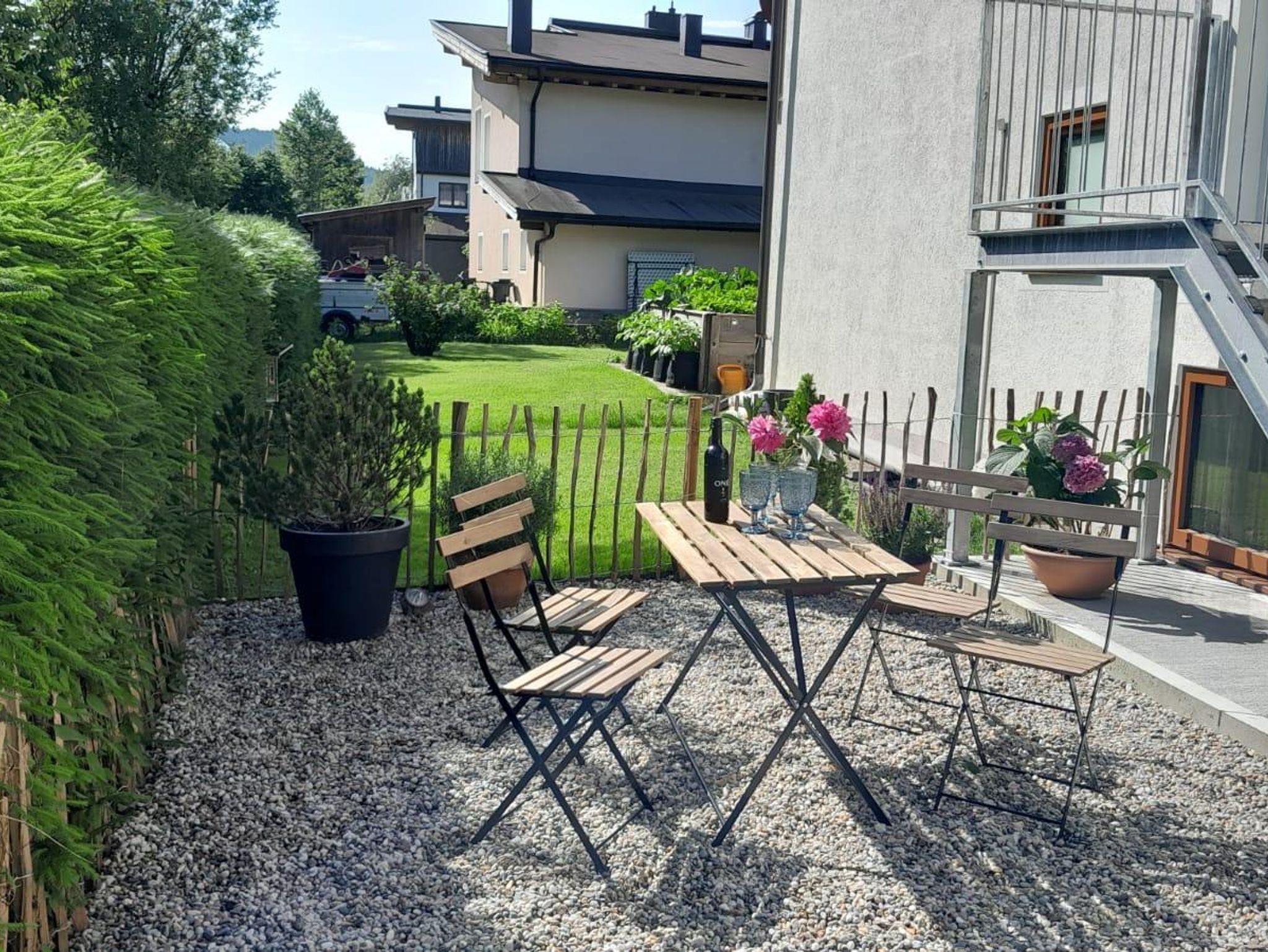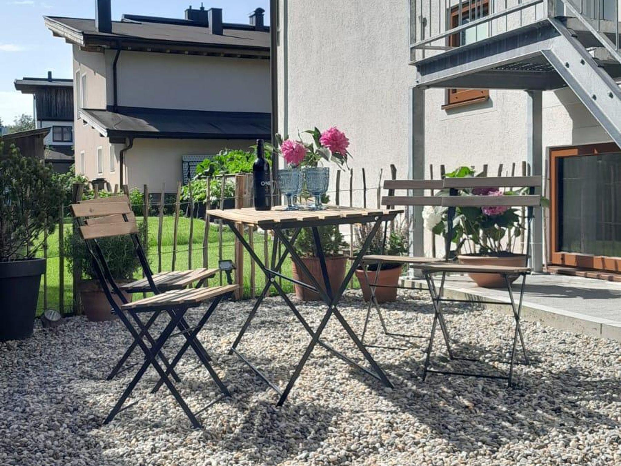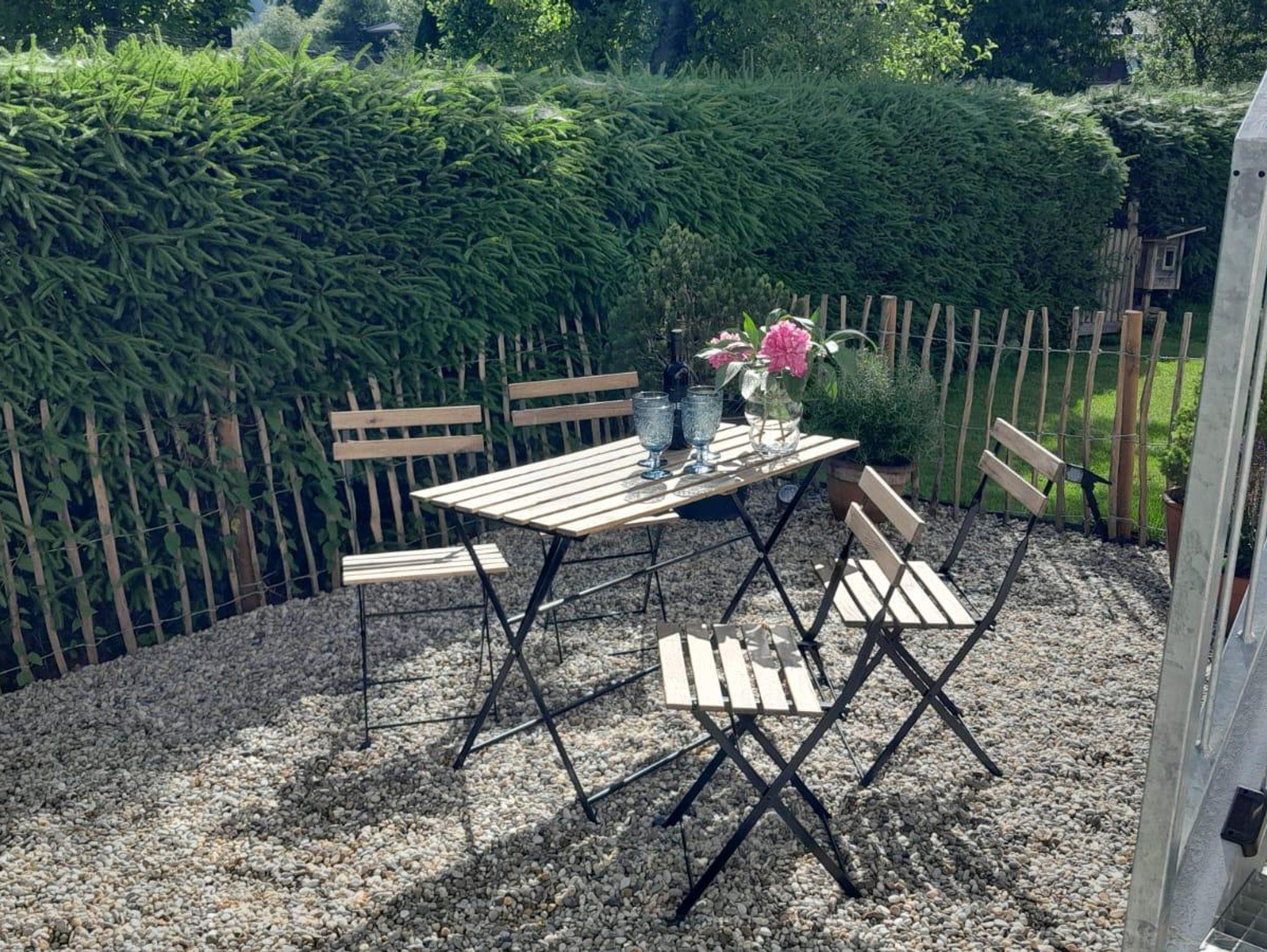 Im Sommer befindet sich ein kleiner Garten mit Sitzgelegenheit direkt neben dem privaten Eingang.