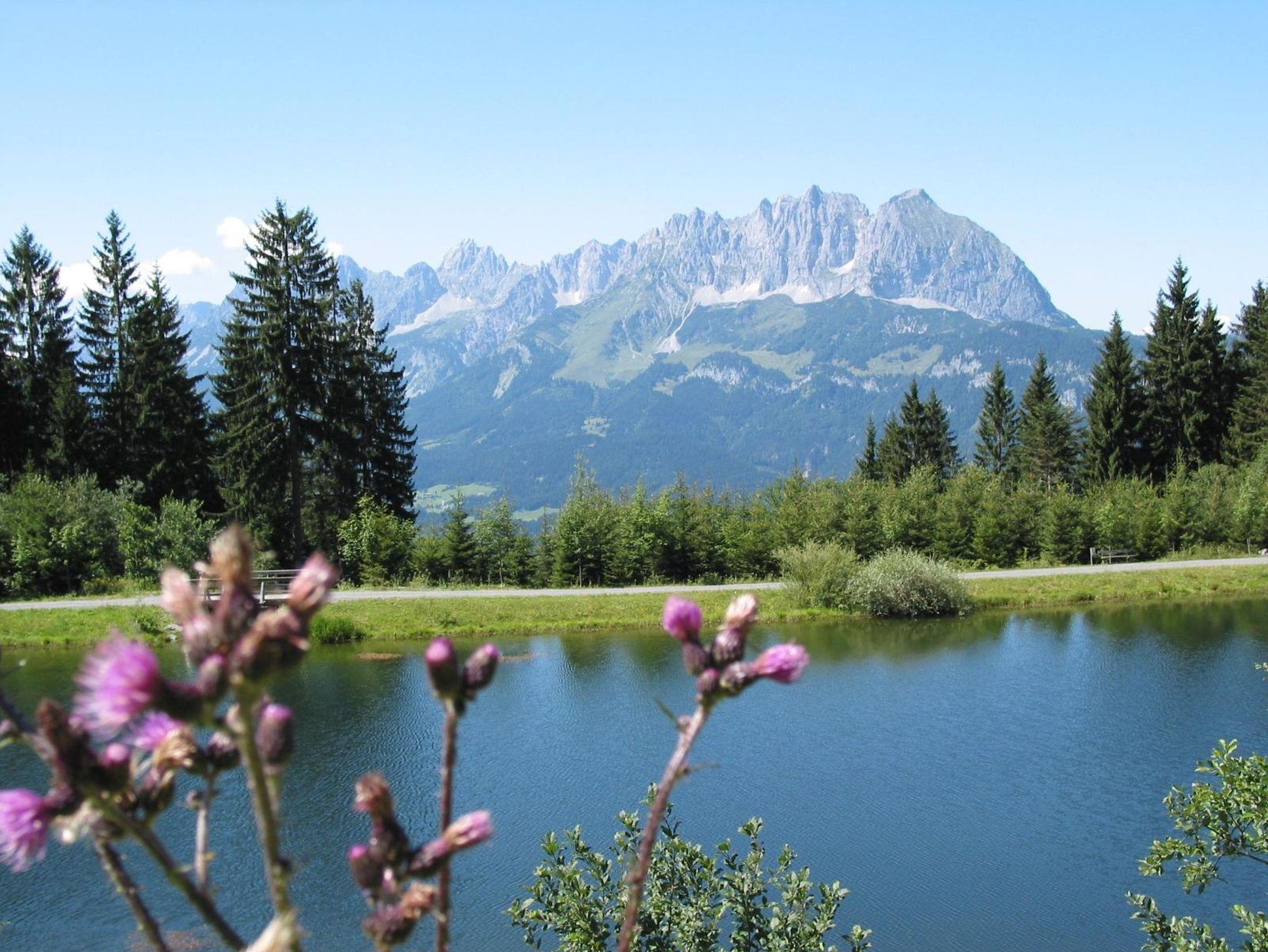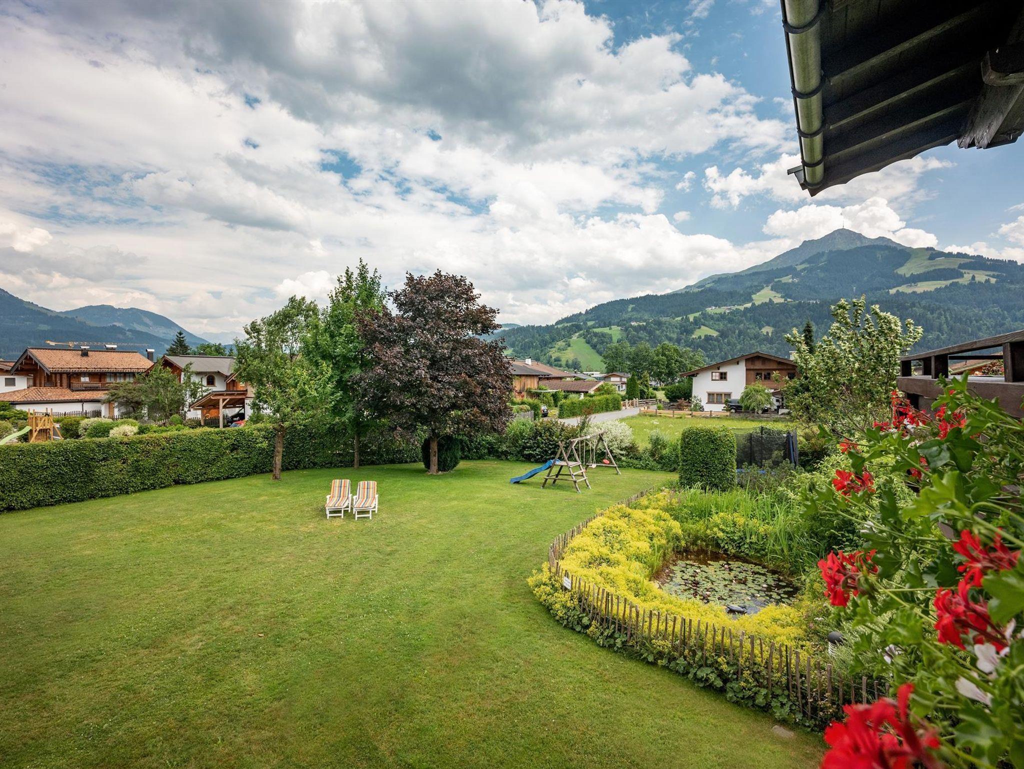 Unser familiär geführtes Haus liegt ruhig und sonnig, nur wenige Minuten vom Zentrum entfernt, mit herrlichem Blick auf das Kitzbüheler Horn und den Wilden Kaiser.