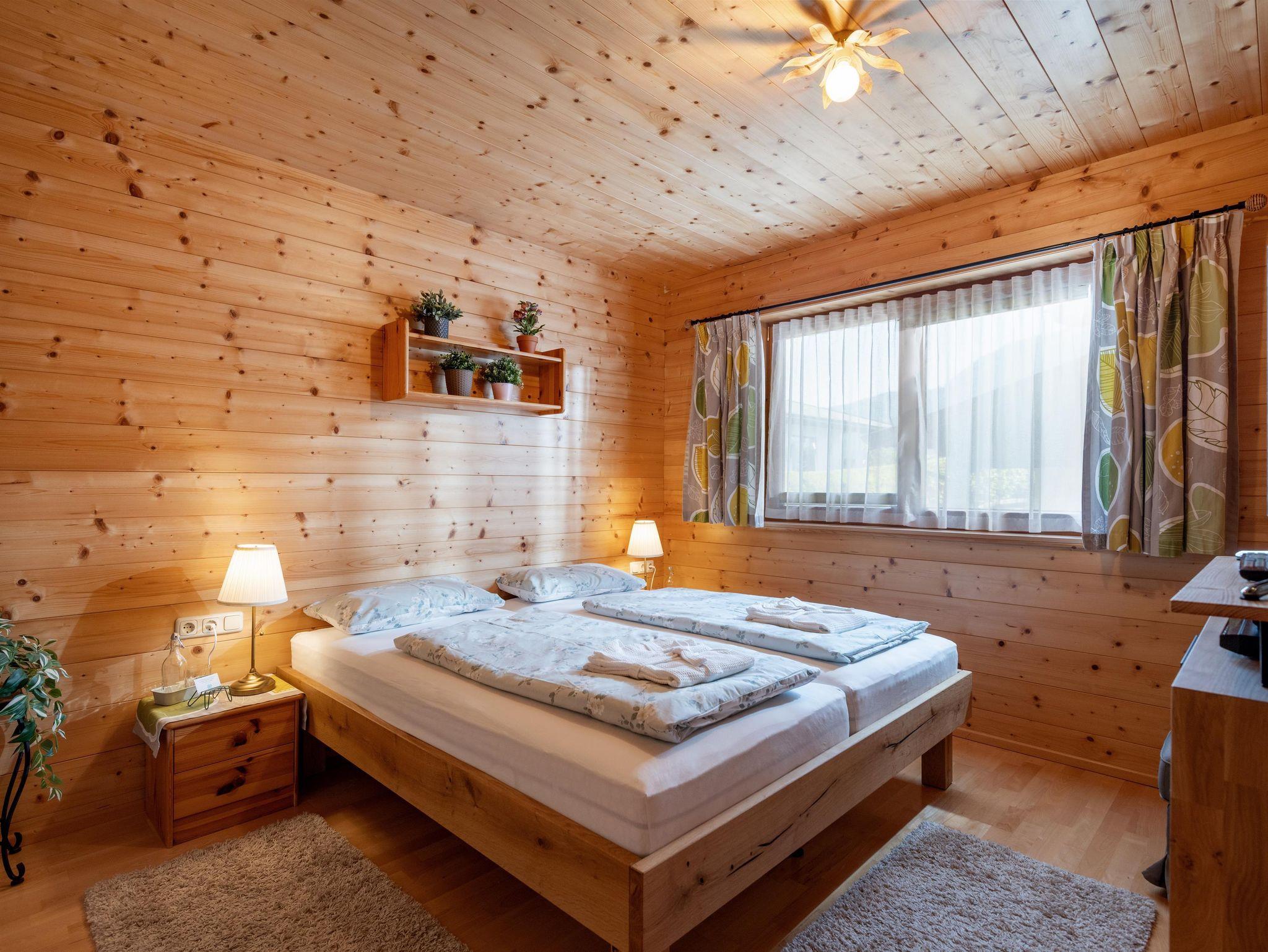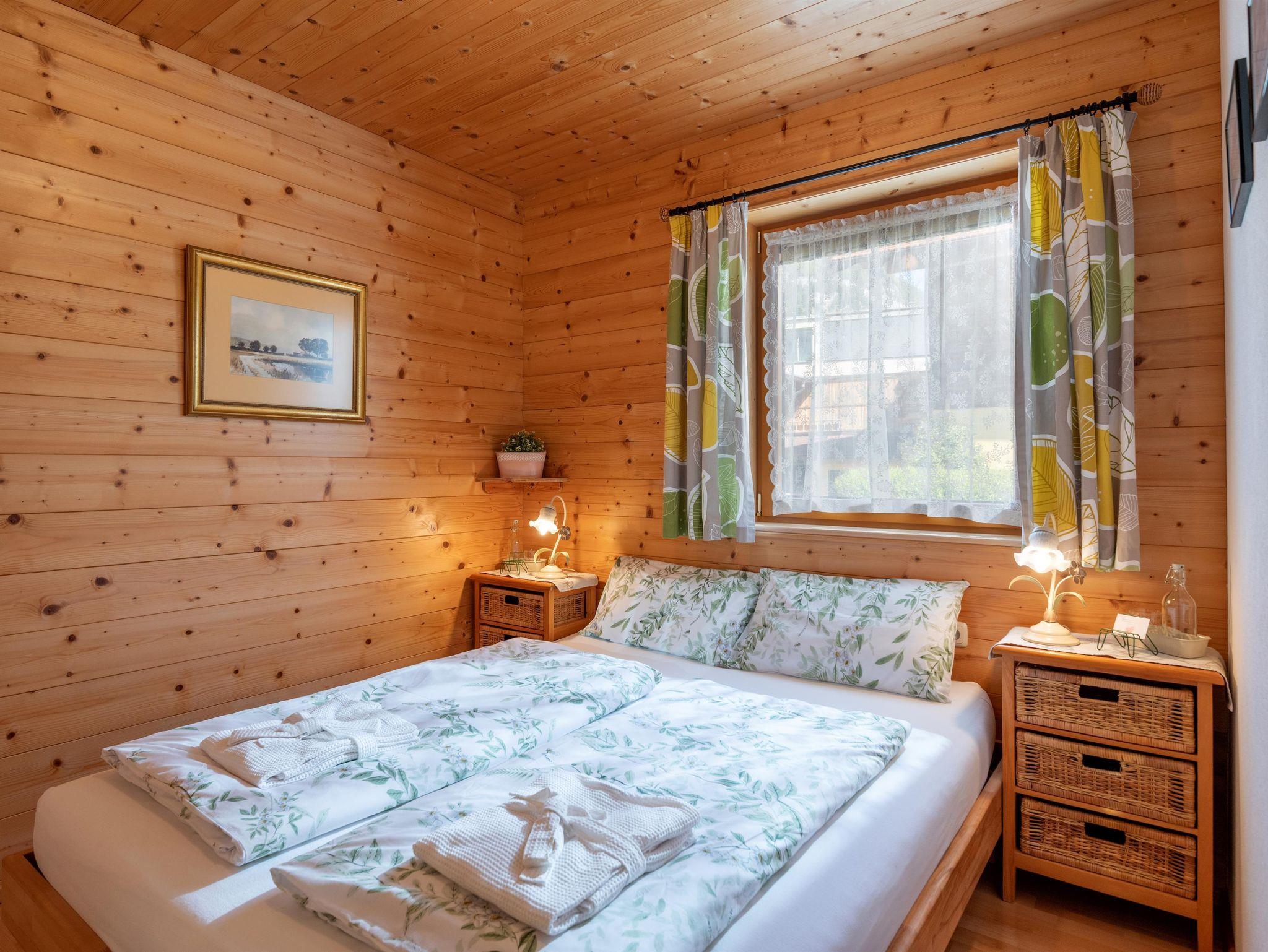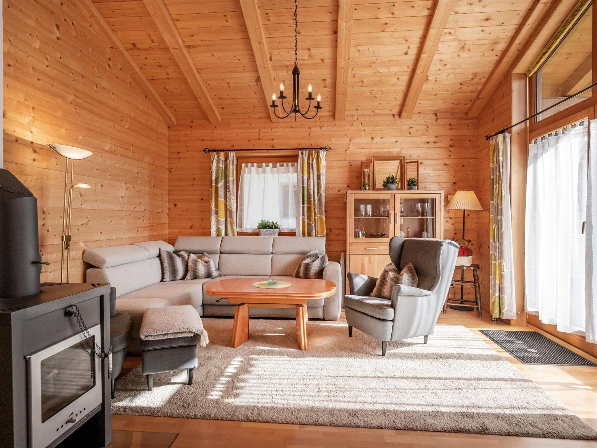 Eure Reise ins Glück beginnt hier! In unserem komplett aus Holz erbauten Chalet bieten wir euch auf 74 m² die perfekte Atmosphere für einen gemütlichen und gelungenen Ferienaufenthalt. In 2 Schlafzimmern finden bis zu 4 Personen bequem Platz. Im gemütlichen Wohnzimmer könnt ihr nach einem erlebnisreichen Tag entspannen. Die komplett ausgestattete und moderne Küche mit Esstisch ist im Wohnbereich integriert. Das Badezimmer verfügt über eine Badewanne, Dusche und WC. Weiters gibt es ein zweites, abgetrenntes WC. Ebenfalls kostenlos zur Verfügung stehen eine Waschmaschine und ein Wäschetrockner.