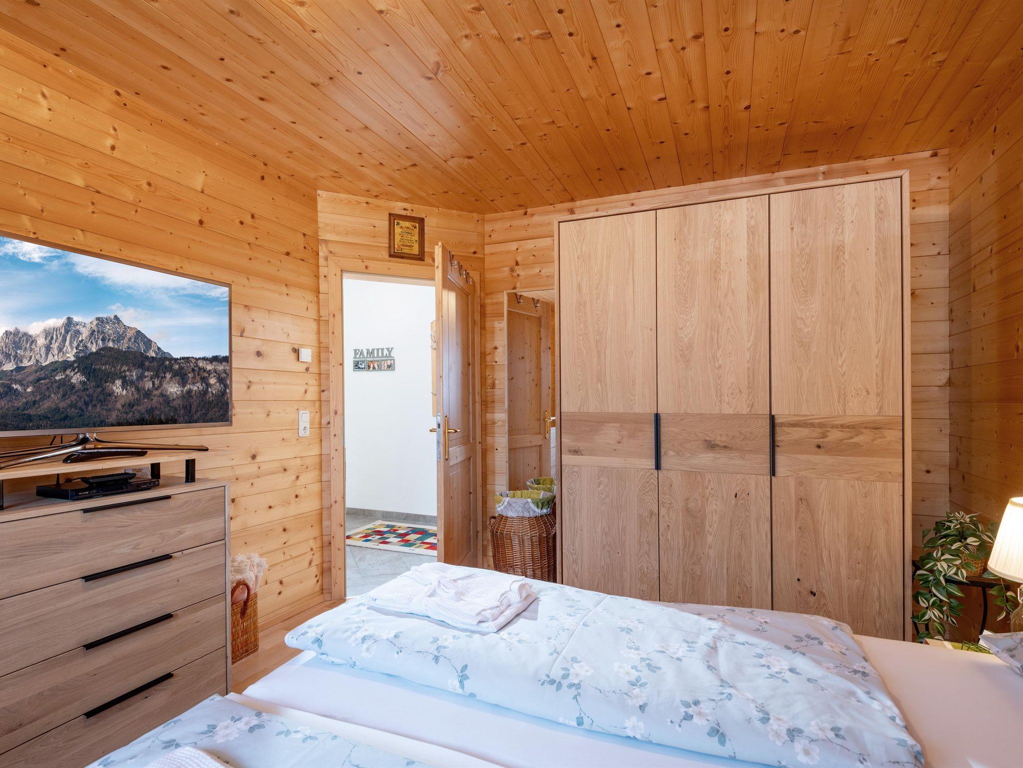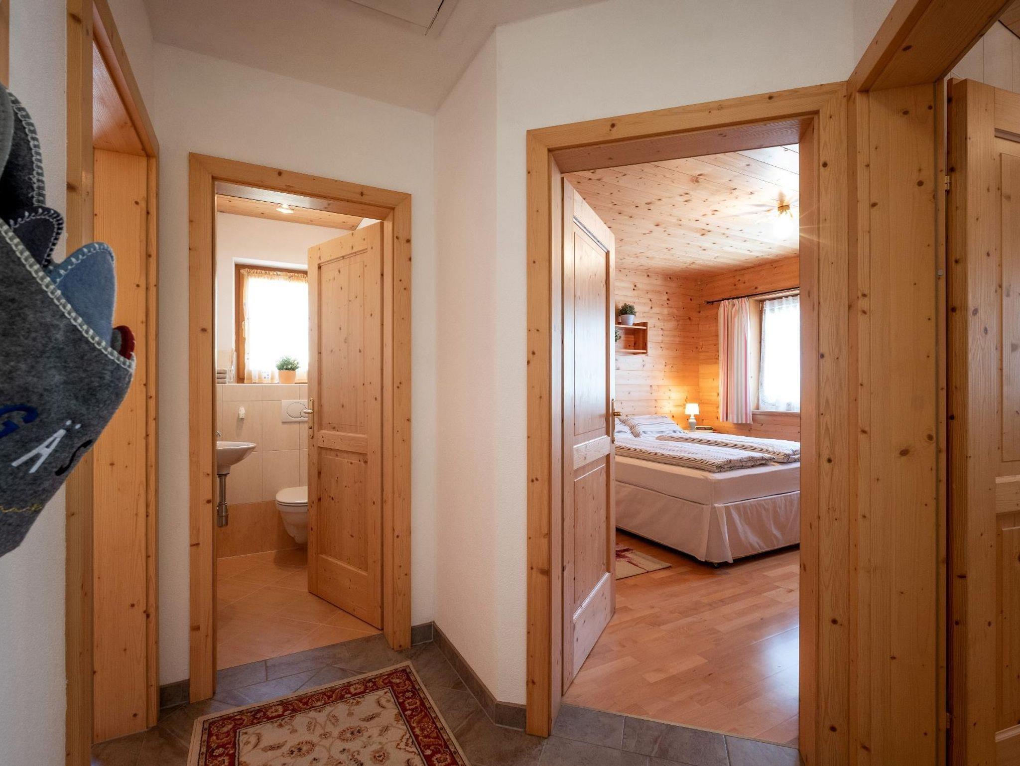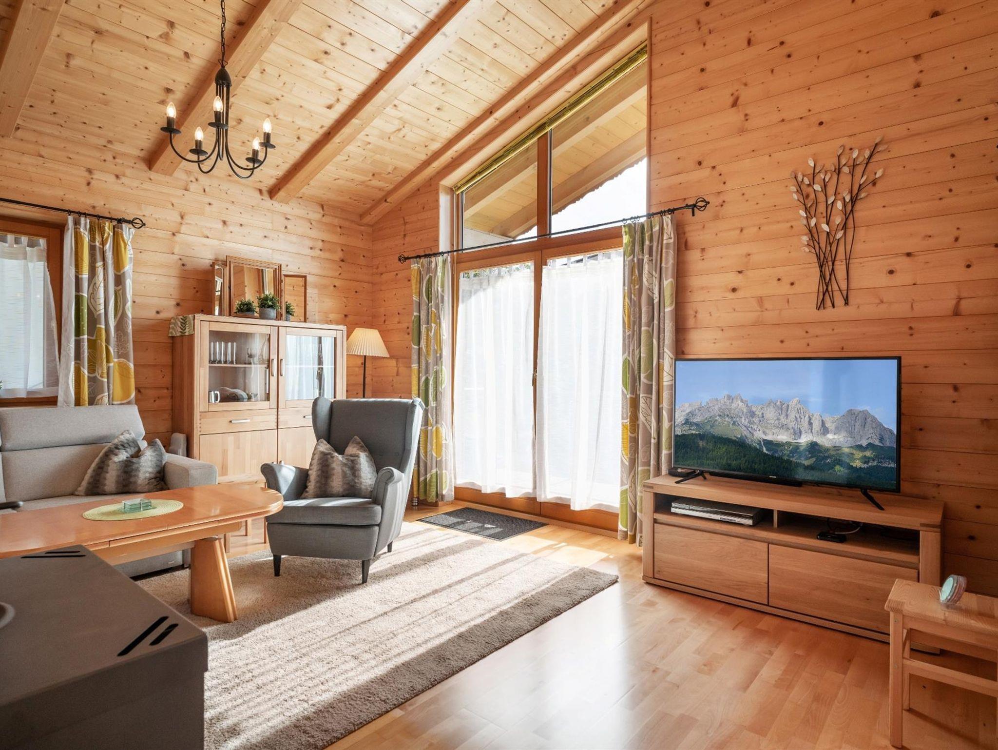 Eure Reise ins Glück beginnt hier! In unserem komplett aus Holz erbauten Chalet bieten wir euch auf 74 m² die perfekte Atmosphere für einen gemütlichen und gelungenen Ferienaufenthalt. In 2 Schlafzimmern finden bis zu 4 Personen bequem Platz. Im gemütlichen Wohnzimmer könnt ihr nach einem erlebnisreichen Tag entspannen. Die komplett ausgestattete und moderne Küche mit Esstisch ist im Wohnbereich integriert. Das Badezimmer verfügt über eine Badewanne, Dusche und WC. Weiters gibt es ein zweites, abgetrenntes WC. Ebenfalls kostenlos zur Verfügung stehen eine Waschmaschine und ein Wäschetrockner.