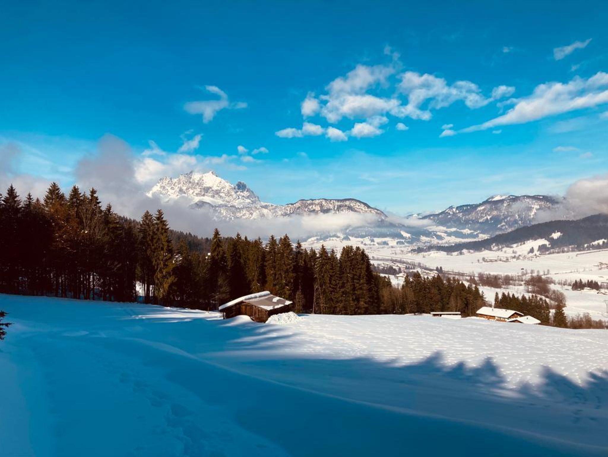 Genießen Sie vom Balkon aus, den einzigartigen Panoramablick auf den Wilden Kaiser, den Kalkstein und das Kitzbüheler Horn. Ein perfekter Moment, die Seele einmal baumeln zu lassen.