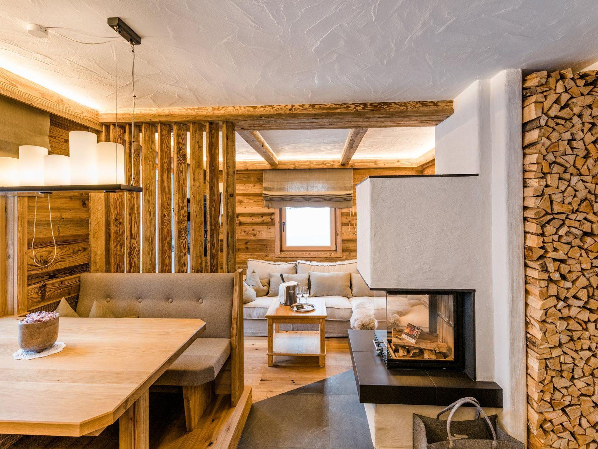Ein separates Schlafzimmer mit hochwertigem Schlafsystem, großzügigen Wohnraum, einen Kamin mit offenem Feuer, Panorama-Balkon, Badezimmer mit Whirlwanne und Dusche sowie separates WC.