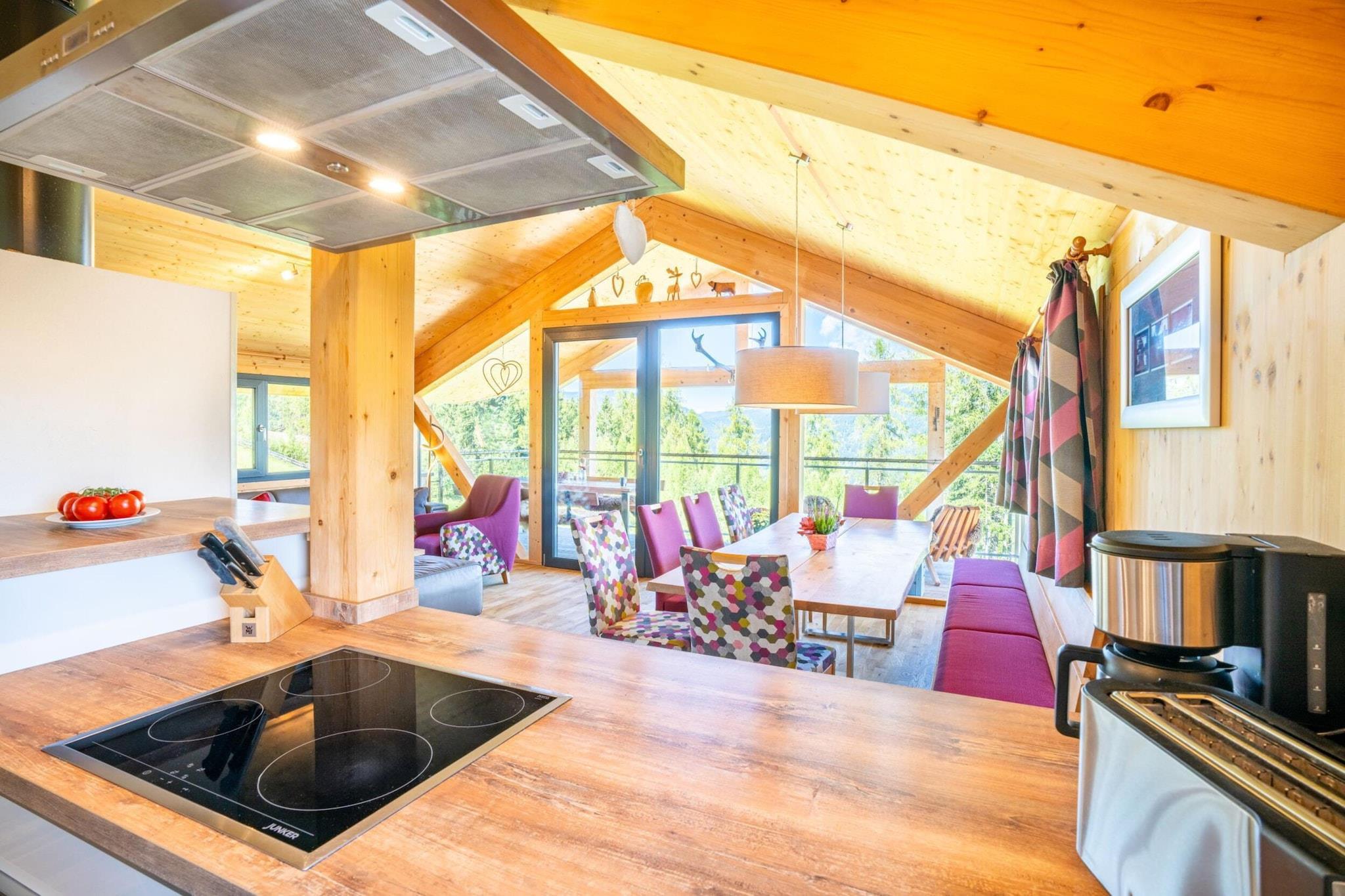 „Erleben Sie unvergleichlichen Komfort und atemberaubende Ausblicke in unserem Superior Chalet, das auf 120 m² stilvollem Wohnraum Platz für bis zu 10 Personen bietet. Eingebettet in die atemberaubende Region Schladming-Dachstein ist dieses außergewöhnliche Chalet perfekt für Familien oder Gruppen, die einen luxuriösen alpinen Rückzugsort suchen. Treten Sie hinaus auf einen der beiden Balkone und genießen Sie den atemberaubenden Blick auf den Dachstein, den kultigen Hausberg, und das darunter liegende Ennstal. Das moderne Chalet liegt direkt an der Skipiste und bietet im Winter Ski-in/Ski-out Zugang und im Sommer direkten Zugang zu den Wanderwegen. Das Superior Chalet verfügt über vier schön eingerichtete Schlafzimmer, davon drei mit bequemen Doppelbetten und eines mit zwei Stockbetten, ideal für größere Gruppen. Jedes der vier Badezimmer ist mit einer modernen Dusche ausgestattet, während ein weiteres Badezimmer mit einer entspannenden Badewanne und einer finnischen Sauna für ultimative Entspannung und Wellness sorgt. Die offene Küche ist der Traum eines jeden Kochs, voll ausgestattet mit Top-Geräten wie Cerankochfeld, Backofen, Geschirrspüler und Kühlschrank mit Gefrierfach. Die wichtigsten Küchenutensilien wie Besteck, Kochgeschirr, Toaster, Wasserkocher und Kaffeemaschine sind ebenfalls vorhanden. Bei Ihrer Ankunft finden Sie ein kleines Starterset mit Spülmaschinentabs, Spülmittel, einem Schwamm, Müllbeuteln, einem Reinigungstuch und einem Geschirrtuch, um Ihren Aufenthalt noch angenehmer zu gestalten. Zu den weiteren Annehmlichkeiten gehören kostenloses Wi-Fi und Satellitenfernsehen, damit Sie während Ihres Aufenthalts in Verbindung bleiben und sich unterhalten können. Bitte beachten Sie, dass es sich bei den Bildern des Chalets um Beispielbilder handelt, da jedes Haus individuell eingerichtet ist und somit ein einzigartiges Erlebnis bietet. Das Chalet beinhaltet eine Schladming-Dachstein Sommer Card (Mitte Mai bis Anfang November), die Ihren Aufenthalt zusätzlich aufwertet. “