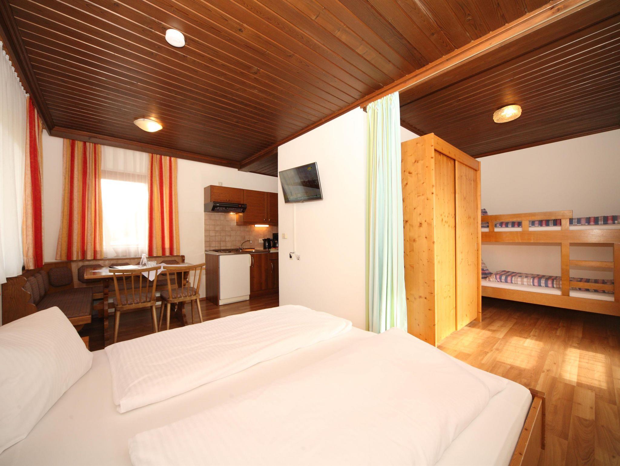 Das Appartement hat einen Schlaf-wohn Raum mit Kochnische und Sitzecke ein Doppelbett und ein Stockbett(länge 180cm) Bad mit Dusche und WC. Mit Balkon. Für 2 Erwachsene und 2 Kinder