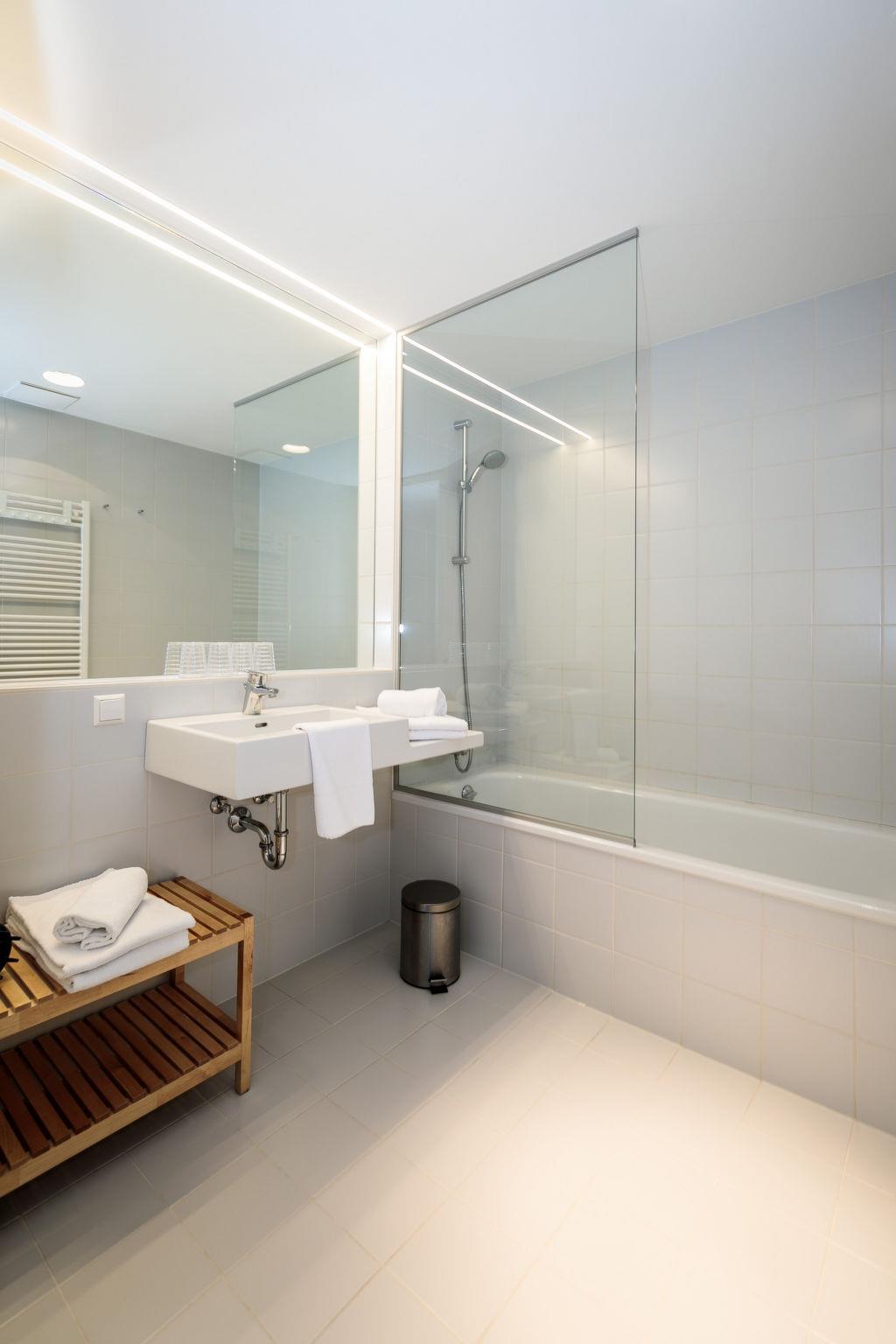 "mit 2 Schlafzimmern & Saunabereich", 3-Zimmer-Wohnung 59 bis 67 m2. Hell, modern eingerichtet: Eingang. Offenes Wohn-/Schlafzimmer mit 1 Doppeldiwanbett, Esstisch und Sat-TV (Flachbildschirm). 1 Doppelzimmer. 1 kleines Zimmer mit 1 Doppelbett, Sat-TV und Flachbildschirm. Offene Küche (Backofen, Geschirrspüler, 4 Glaskeramikplatten, Tiefkühler, elektrische Kaffeemaschine). Bad, sep. WC. Balkon. Balkonmöbel. Schöne Sicht auf die Berge und die Landschaft. Zur Verfügung: Internet (Wireless LAN, gratis). Bitte beachten: Nichtraucher-Unterkunft. Beim Mietobjekt handelt es sich um ein Typenhaus bzw. Um eine Typenwohnung. Sonderwünsche fragen Sie bitte gleich während der Buchung an! Eine spätere Berücksichtigung oder Umbuchung in ein anderes Objekt vor Ort kann nicht garantiert werden. Bei Belegung mit weniger Personen als der maximalen Personenzahl stehen nicht alle Wohneinheiten zur Verfügung.