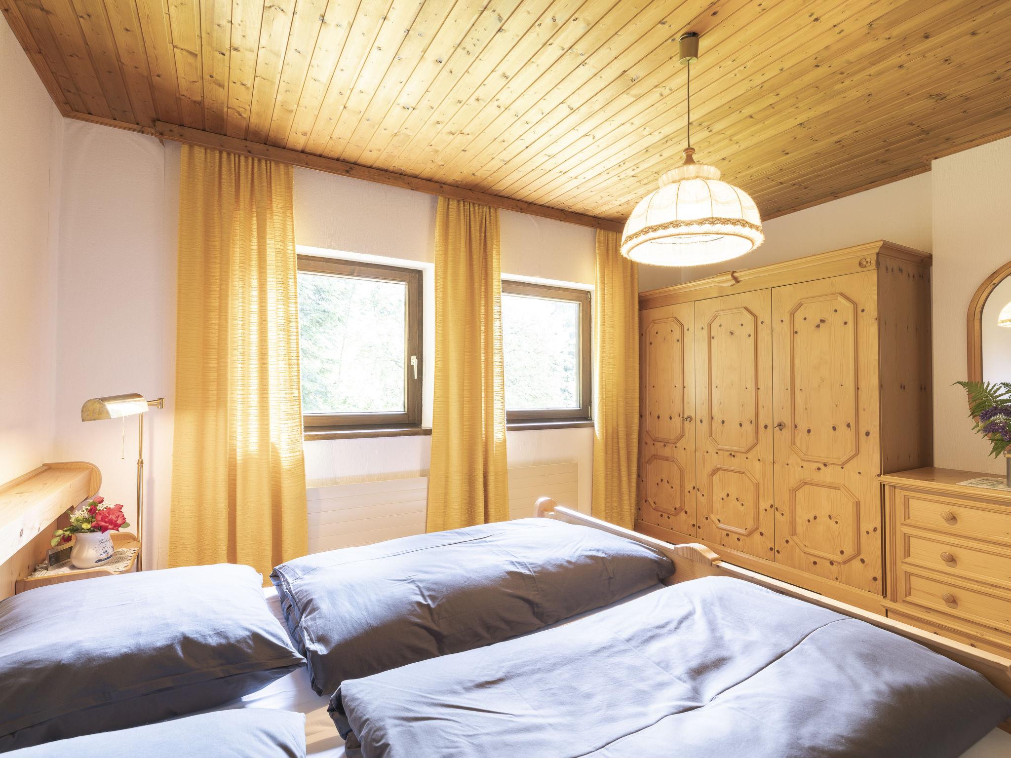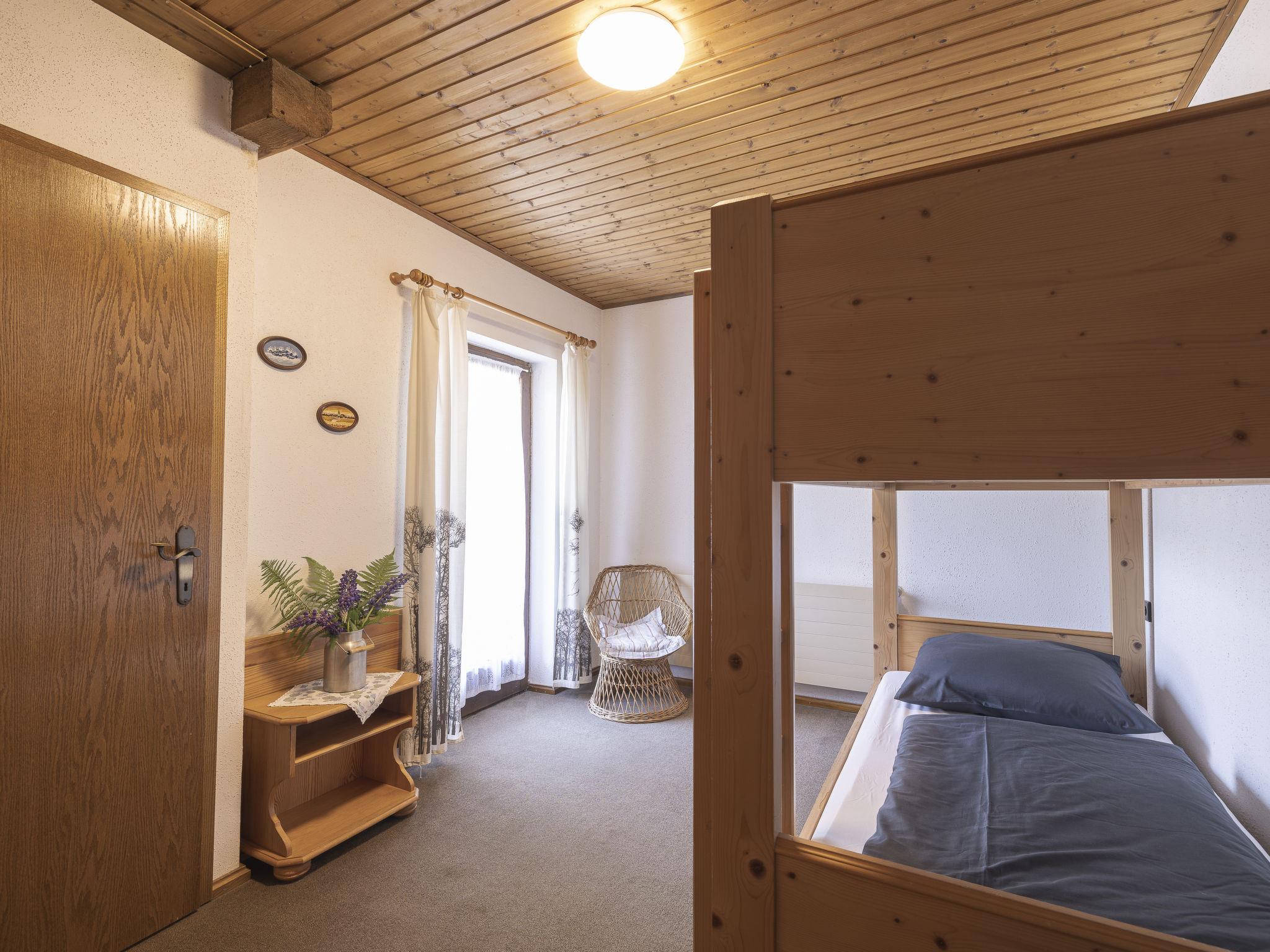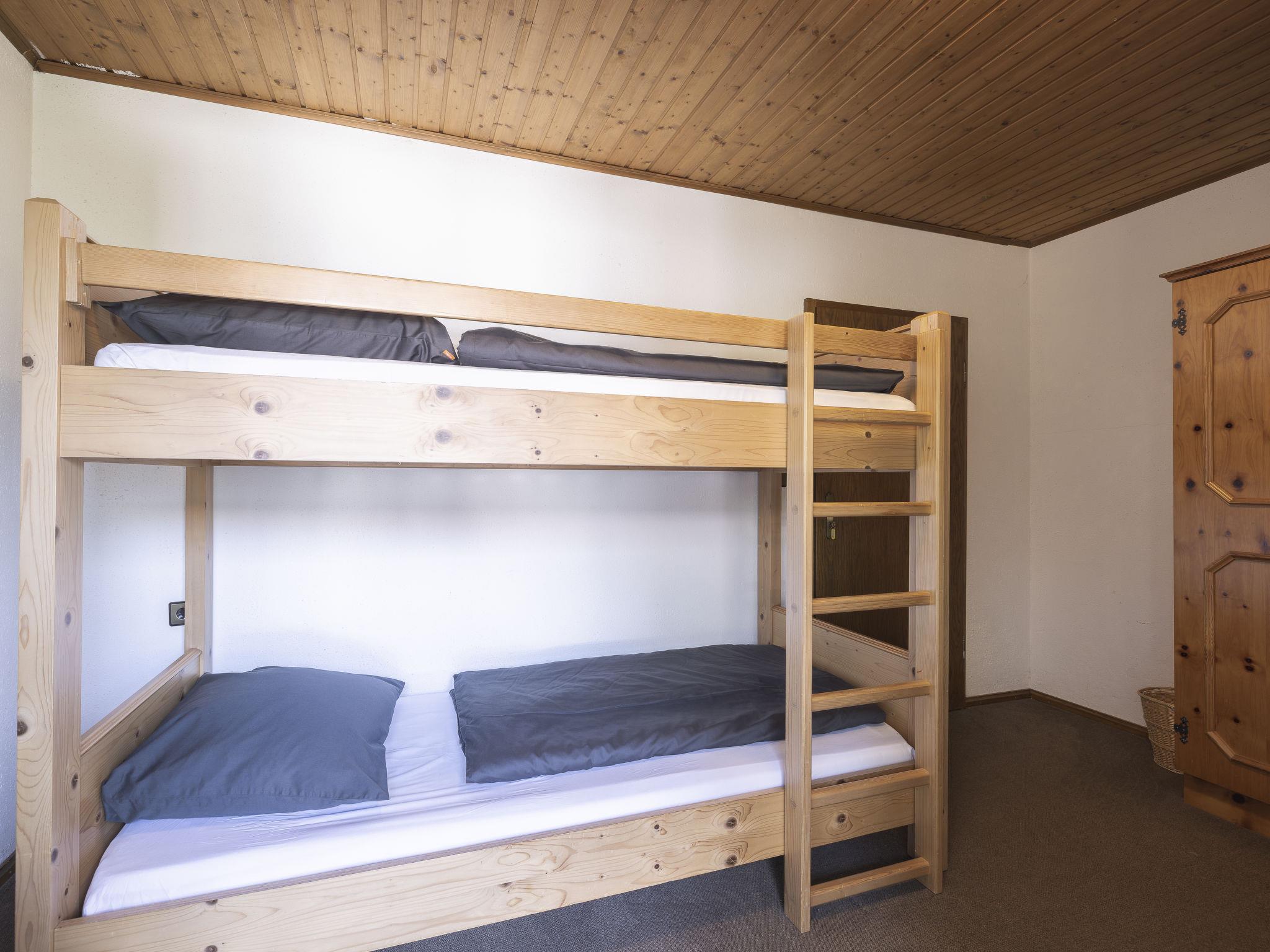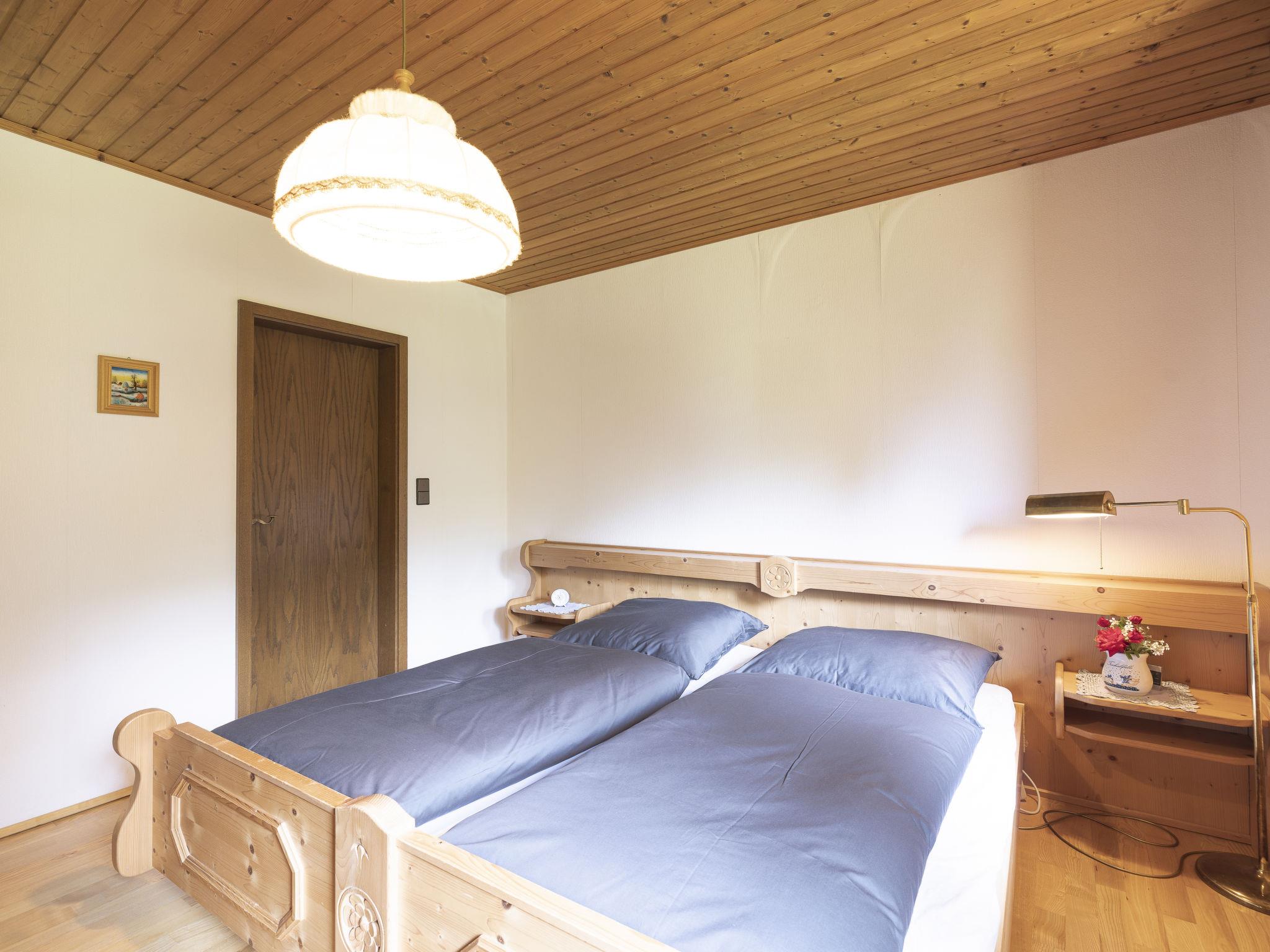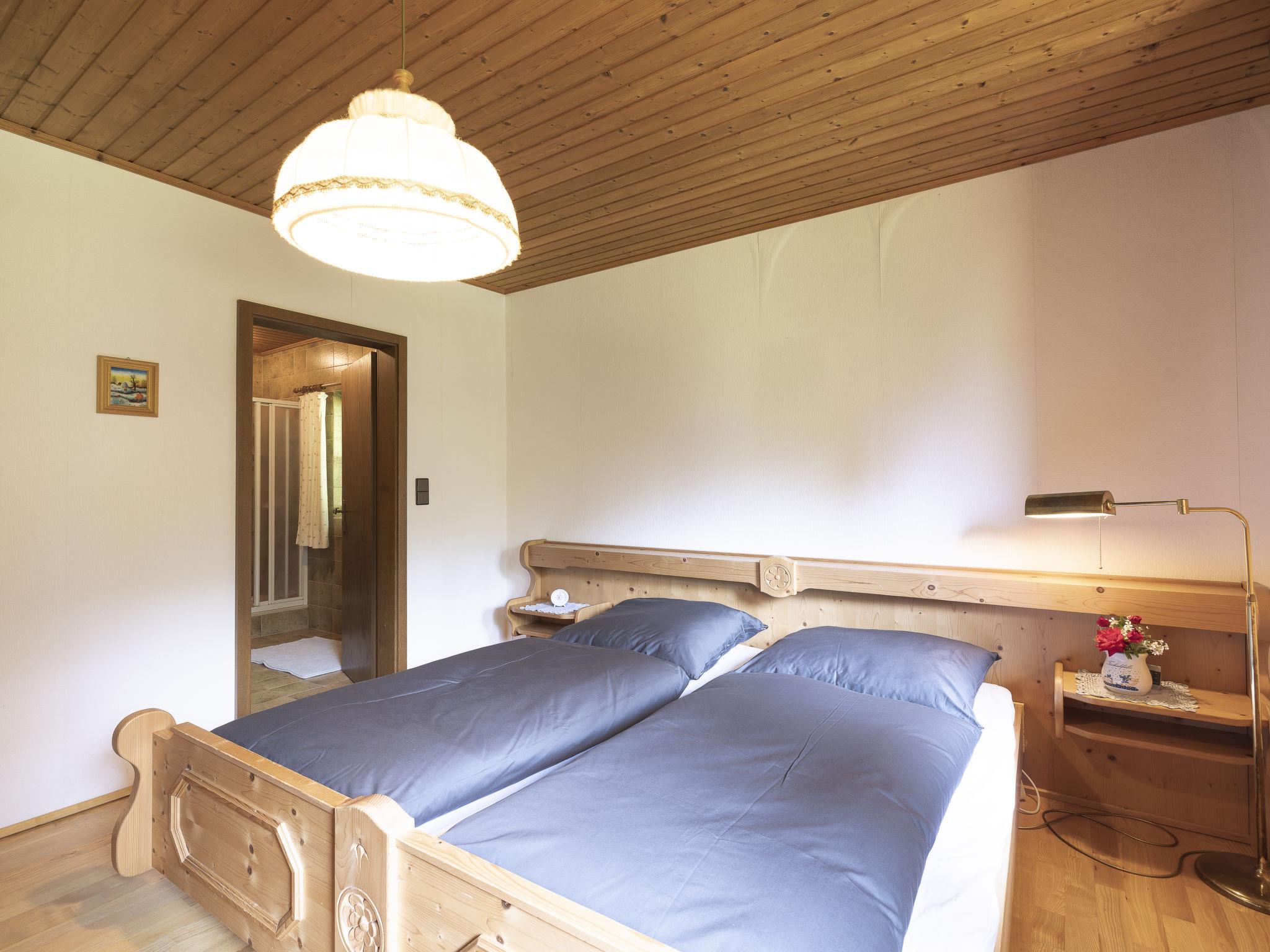 "Appartement 2", 3-Zimmer-Wohnung 55 m2 im 1. Stock. Zweckmässig eingerichtet: Wohnzimmer mit Schwedenofen, Sat-TV und Internationale TV-Sender (Flachbildschirm). Ausgang zum Balkon. 1 Doppelzimmer mit Bad/Dusche/WC. 1 Zimmer mit 1 x 2 Etagenbetten. Ausgang zum Balkon. Küche (Backofen, Geschirrspüler, Toaster, Wasserkocher, Mikrowelle, elektrische Kaffeemaschine) mit Essecke. Dusche/WC. Ölheizung. Parkettboden. Balkon. Balkonmöbel. Sehr schöne Panoramasicht auf die Berge und das Tal. Zur Verfügung: Internet (WLAN, gratis). Bitte beachten: Nichtraucher-Unterkunft. Maximal 2 Haustiere/Hunde erlaubt. Hinweis: Die Wohnung ist zum öffentlichen Treppenhaus nicht abgeschlossen.