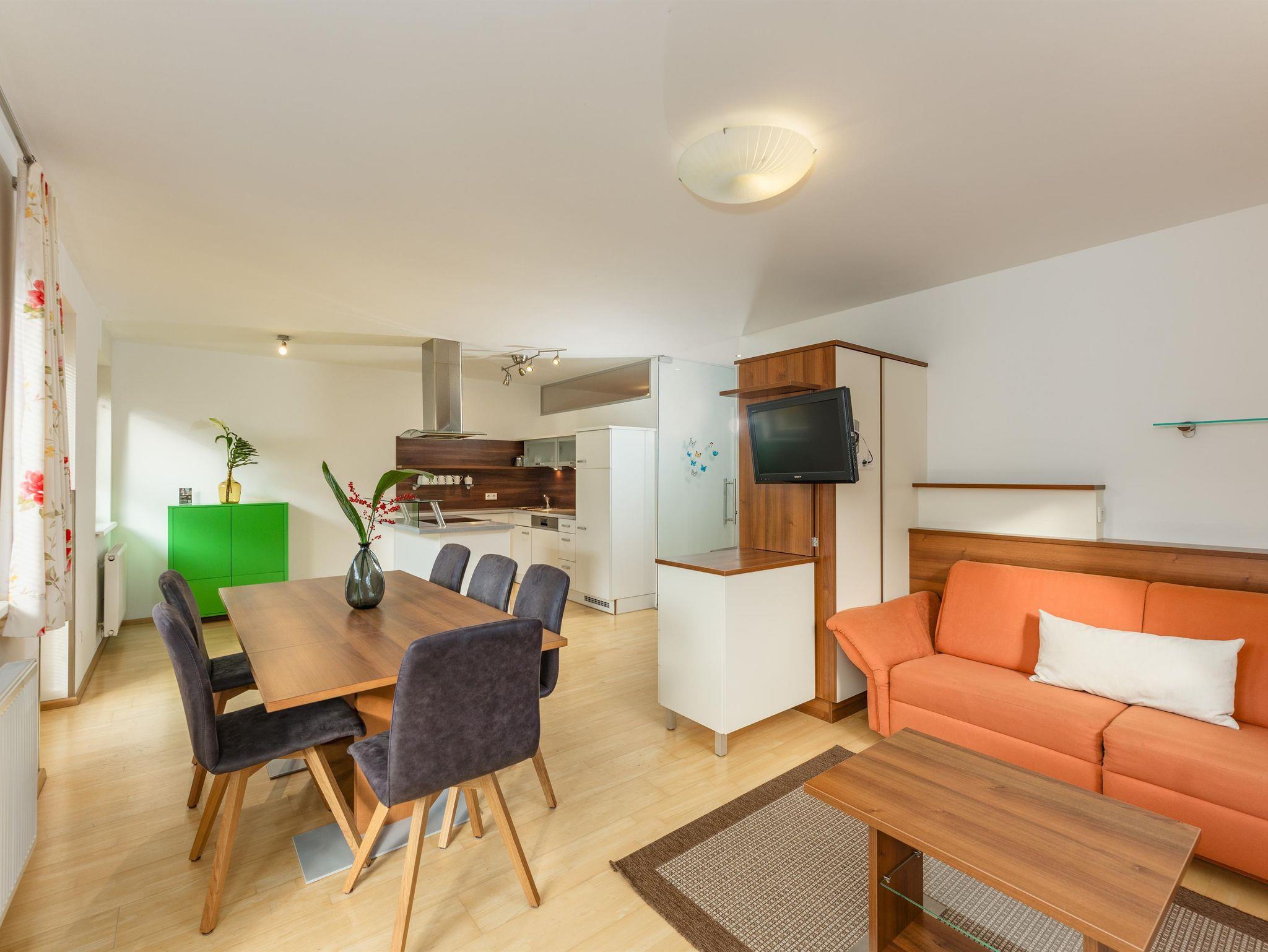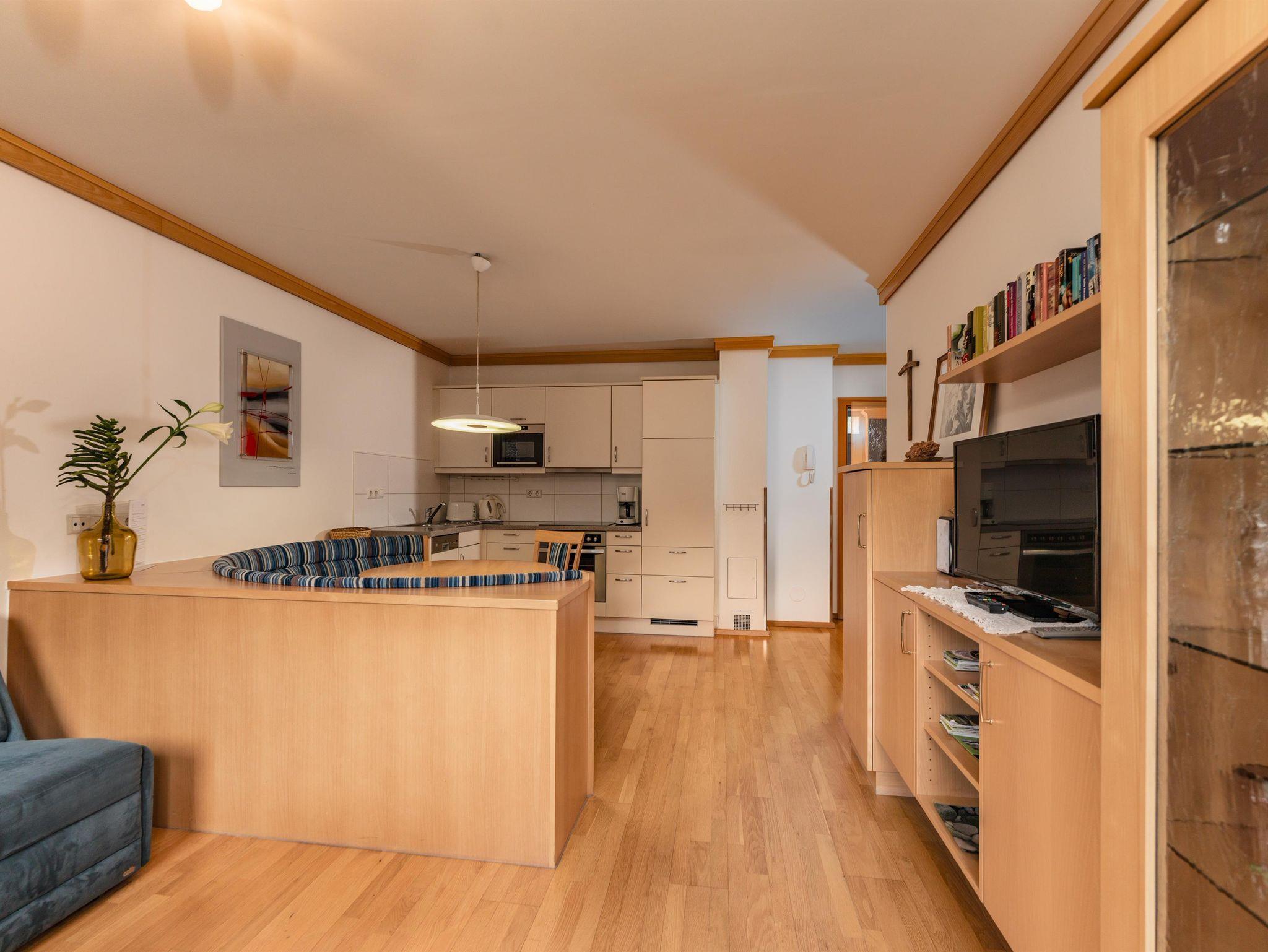 Weitere Annehmlichkeiten wie ein Garagenparkplatz pro Appartement, kostenfreies Wlan, Kabel-TV, ein Lift im Haus sowie ein Fahrrad- und Skiraum mit Skischuhtrockner runden den perfekten Urlaub ab.