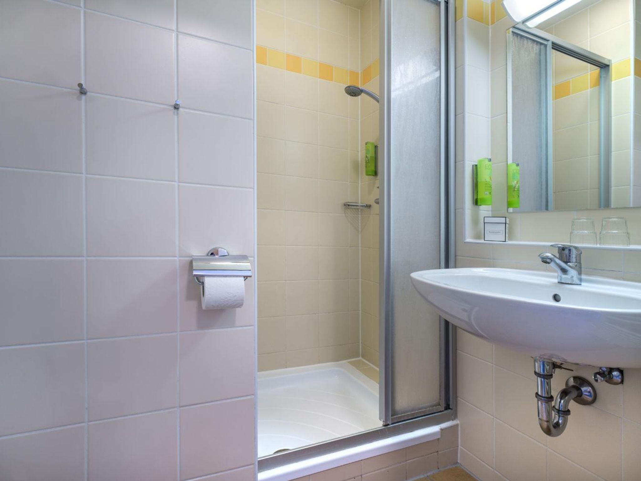 Helle und freundliche Zimmer mit flexiblen Bettensystemen (Doppel-, Einzel-, Sofa-, und Etagenbetten), funktionelle Einrichtung aus natürlichen und regionalen Rohstoffen. Badezimmer mit Dusche/WC