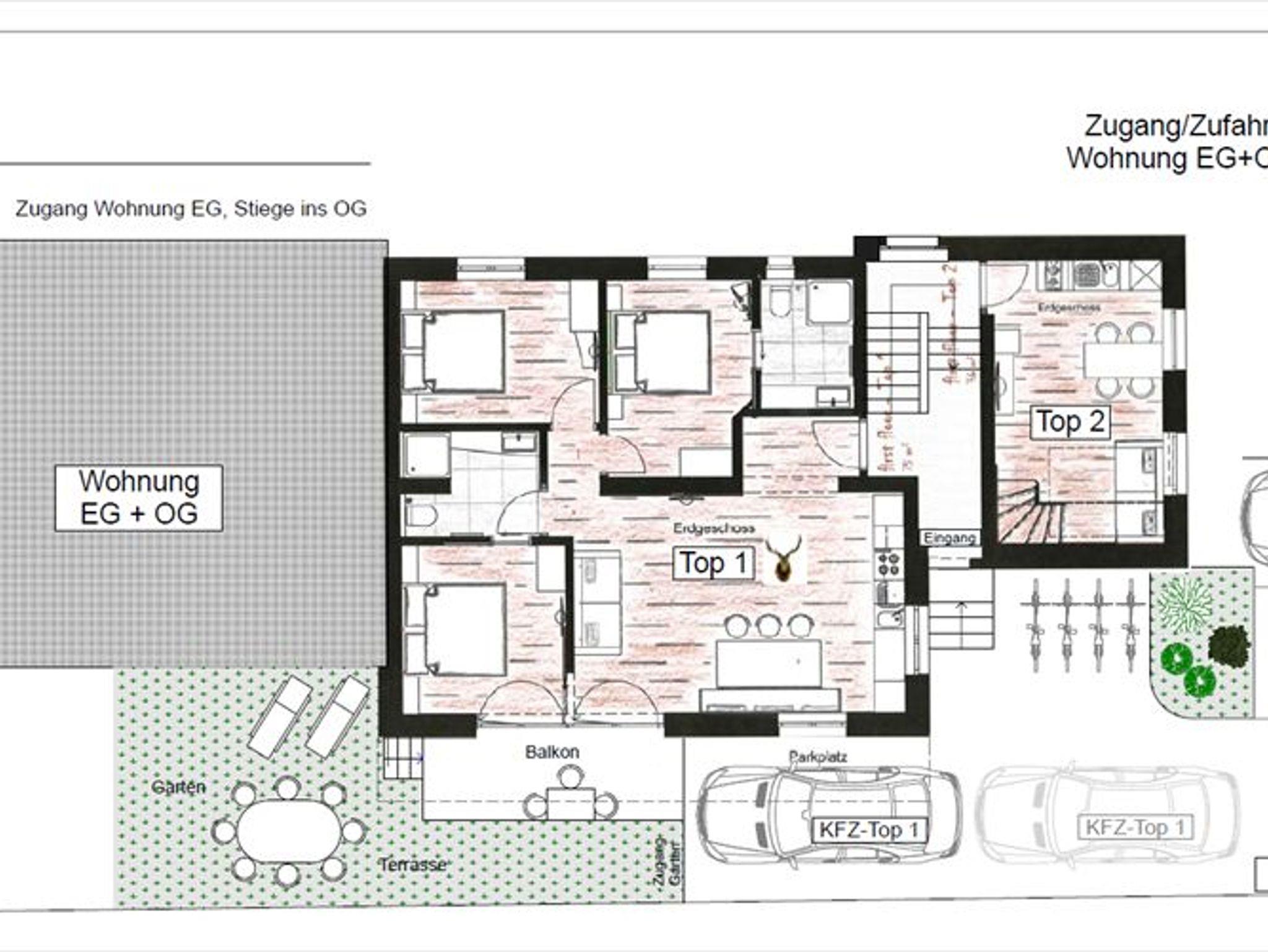 450 Meter zum Planet Planai Stadion, dem Haupteinstieg der 4-Berge Skischaukel, nur 500 Meter in das pulsierende Stadtzentrum von Schladming mit seinen zahlreichen Restaurants, Bars und Shops sowie nahe unzähliger Freizeitaktivitäten, eröffnet das Wohn- & Appartementhaus „Free Feel“ seine Pforten für unsere Gäste. Durch die Toplage, die traumhafte Aussicht auf unsere Berge und überdies dem modernem Interieur gepaart mit Komfort und Gemütlichkeit, garantieren die Appartements im Haus „Free Feel“ einen Wohlfühlurlaub im Sommer wie im Winter. Heimische und hochwertige Materialien vermitteln eine typisch heimelige Gemütlichkeit mit modernem-alpinen Touch. Geboten werden 2 separate Appartements, die insgesamt Platz für 12 Personen bieten. Top 1 bietet auf einer Wohnfläche von 75m² Platz für 6-8 Personen und Top 2 auf 2 Etagen 36m² Platz für 2-4 Personen. In beiden Appartements erwarten Sie Annehmlichkeiten wie großzügige Wohnräume, separate Schlafzimmer, freies Wlan sowie Kabel-TV. Das Top 1 bietet außerdem einen Balkon und kleinen Garten. Wünschen Sie also einen Wohlfühlurlaub in bester Lage, noch dazu autofrei, dann sind die Appartements Free Feel das richtige Urlaubsdomizil für Sie und Ihre Familie / Freunde.