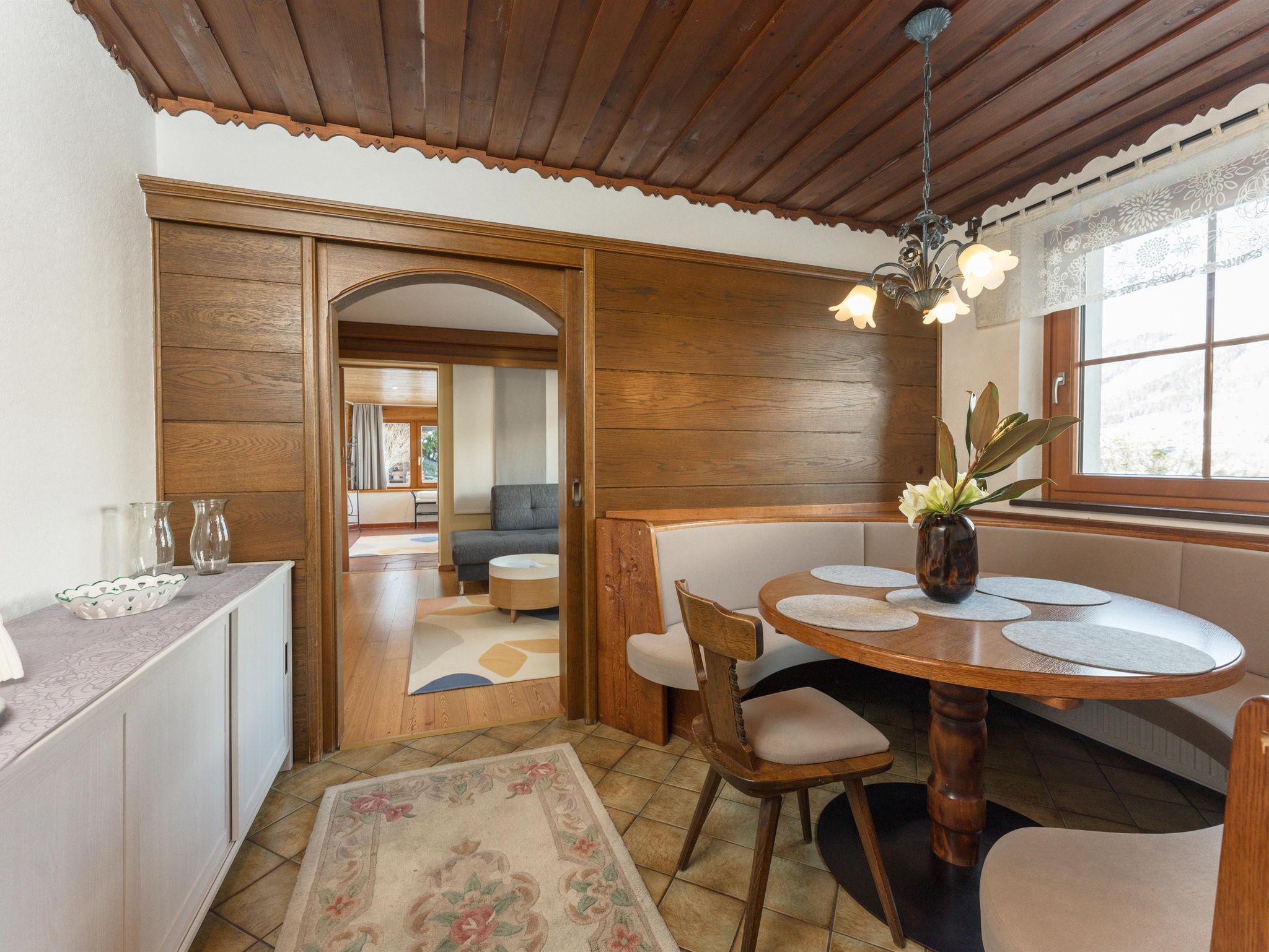 Top 2: 4 Personen - Im 2. Stock des Hauses teilt sich die Wohnfläche von 60 m² in eine Küche mit Essbereich, 2 separate Schlafzimmer mit Flatscreen, zwei Badezimmer sowie einen großzügigen Vorraum. Zudem verfügt die Ferienwohnung über zwei getrennte, großzügige Balkone die nach Nord sowie nach Süd ausgerichtet sind. Die Ausstattung des Appartements ist elegant-rustikal und zeichnet sich vor allem durch Komfort und Gemütlichkeit aus.