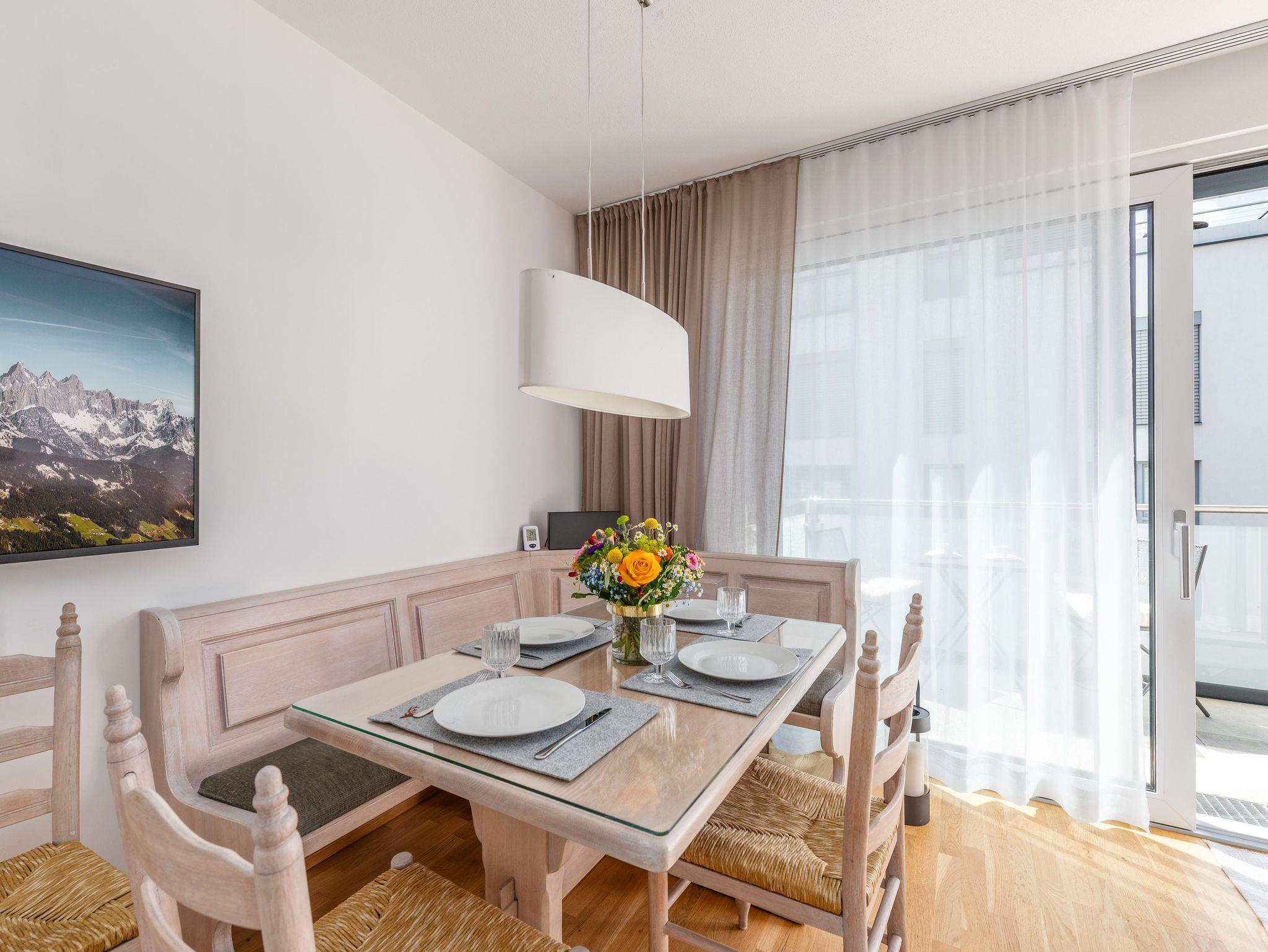 Das hochwertig eingerichtete Neualm 5 vom myNests im Herzen Schladmings bietet Platz für bis zu 6 Personen. Mit seinem modernen Charme bietet das Apartment eine gemütliche, entspannende Atmosphäre mit 2 Schlafzimmern (Doppelbetten) und einem Schlafsofa im Wohnbereich. Einen wunderschönen Ausblick auf die Berge haben Sie auf der großzügigen Terrasse - perfekt für laue Sommernächte. Das Apartment verfügt über zwei Schlafzimmer mit Flat TV`s und eine voll ausgestattete Küche mit Geschirrspüler, Backofen und Kaffeemaschine.