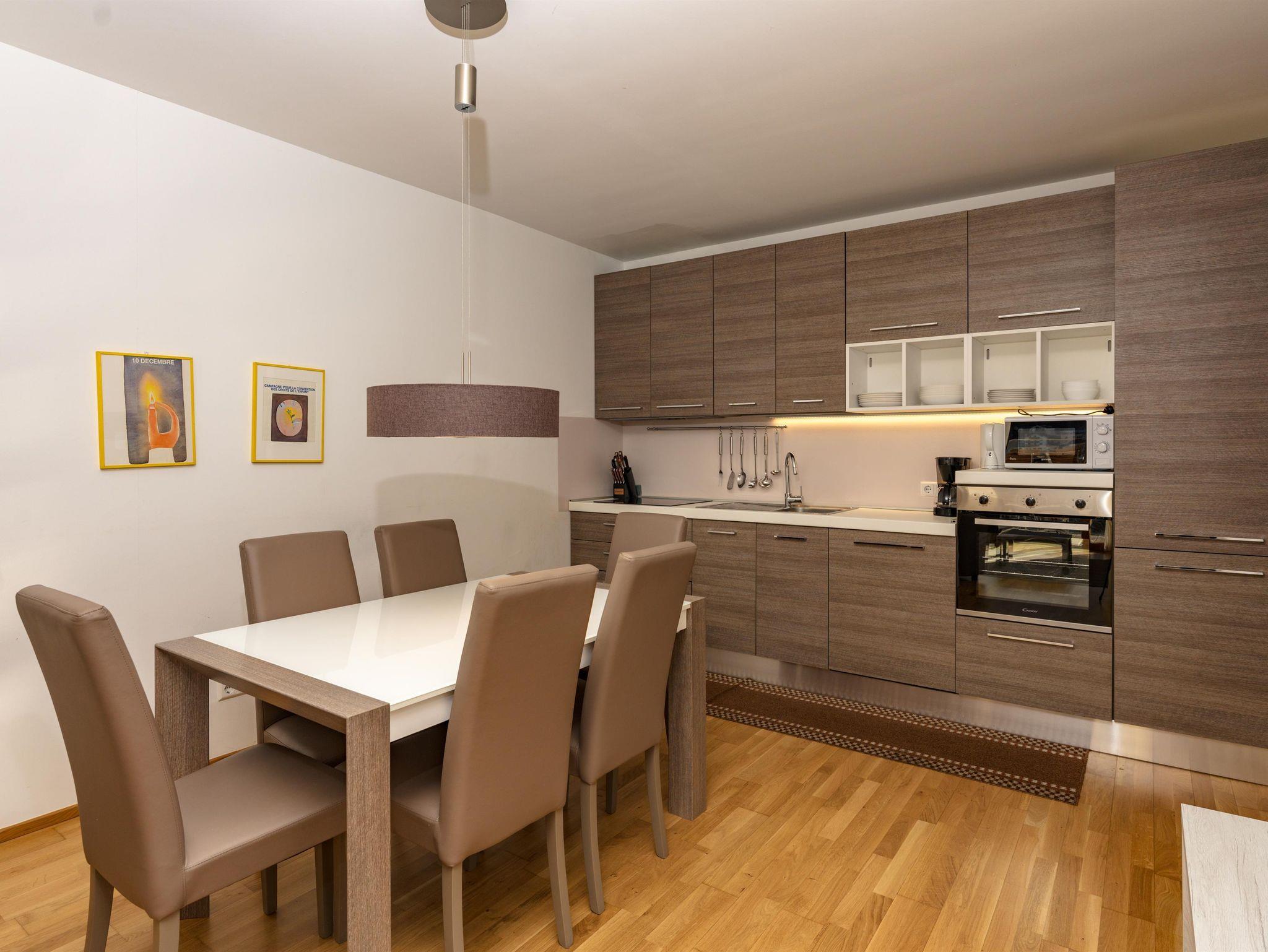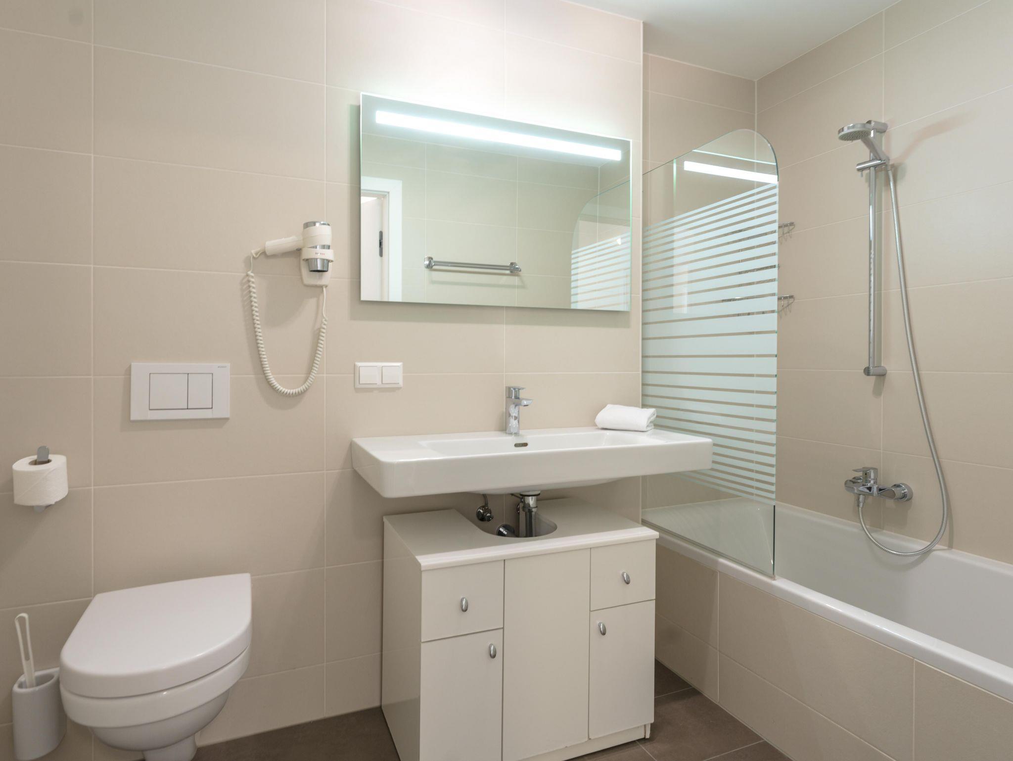 Zu dem Appartement gehört eine Loggia, ausgerichtet nach Süden, die vom Wohnraum sowie von einem Schlafzimmer aus zugänglich ist. Kostenfreies WLAN & Kabel TV lassen für den Gast keine Wünsche offen