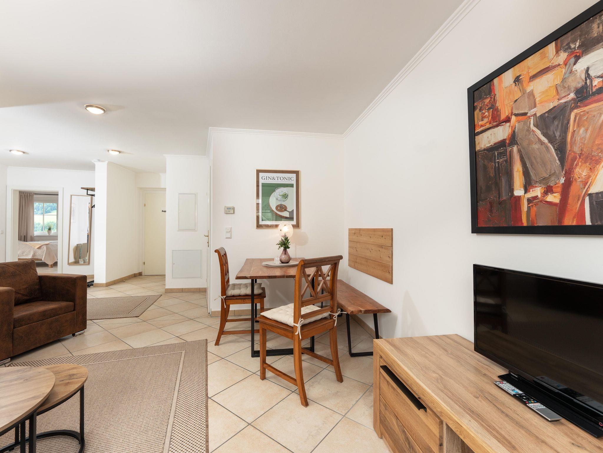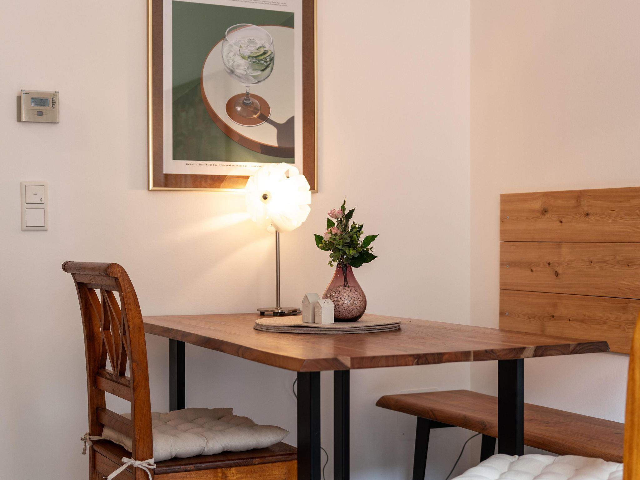 Die lichtdurchflutete Ferienwohnung für 2 bis 4 Personen überzeugt mit modernem Design, durchdachter Raumaufteilung und einem großen Balkon mit herrlichem Blick auf die Berge. Ob zum Frühstück in der Sonne oder zum Entspannen nach einem aktiven Tag – hier lässt es sich ankommen und genießen.
