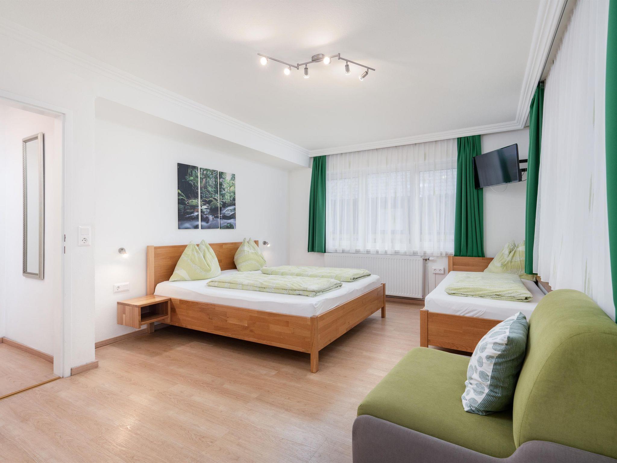 2 separate Schlafzimmer mit jeweils einem Doppelbett sowie einem Einzelbett