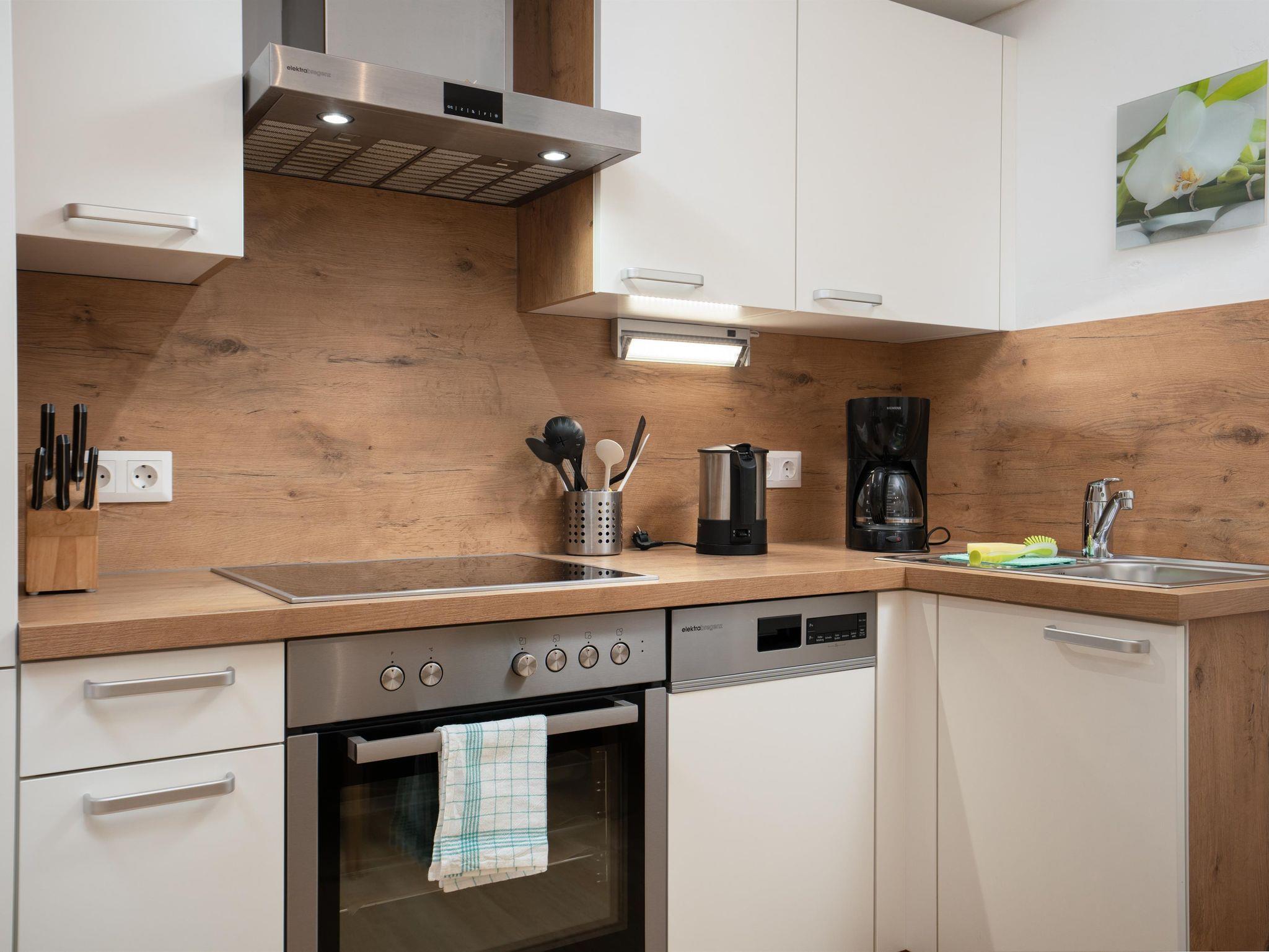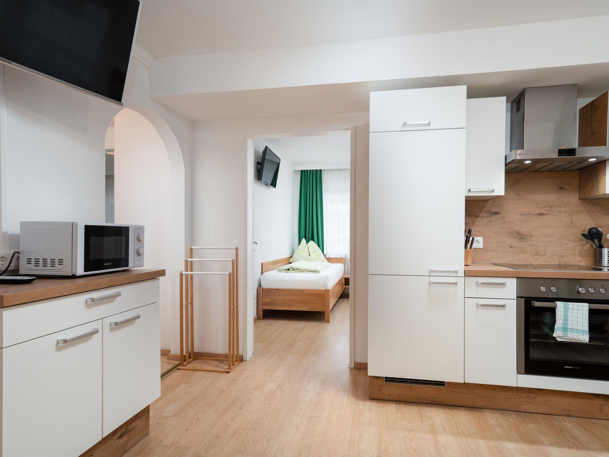 Unsere 6 neu renovierten Apartments befinden sich im 1., 2. und 3. Stockwerk (jeweils zwei Apartments). Das Haus verfügt über einen Lift. Voll ausgestattete Küchen, zwei separate Schlafzimmer sowie ein Badezimmer bieten die Apartments Top 7 bis Top 11. Das Top 12 ist ein Einraumapartment mit Badezimmer und kann mit Top 11 verbunden werden.