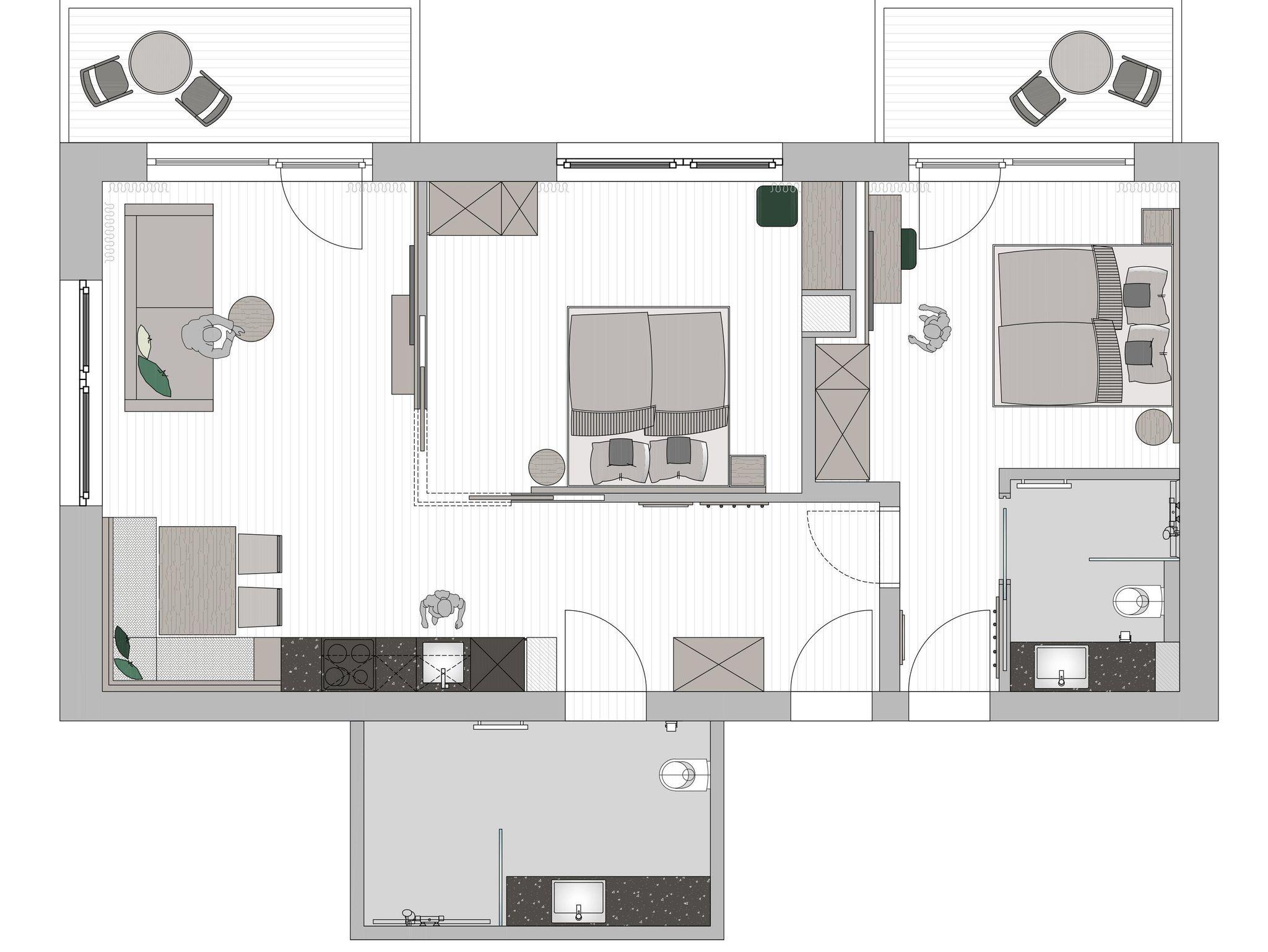 Unser 75 m² Apartment deLuxe bietet Raum für bis zu 6 Personen und alles, was du für eine entspannteAus.Zeit brauchst: eine voll ausgestattete Küche mit Essecke, ein einladender Wohnbereich mit Sofa und Kabel-TV für entspannte Abende sowie 2 Balkone um die Nachmittagssonne zu genießen.