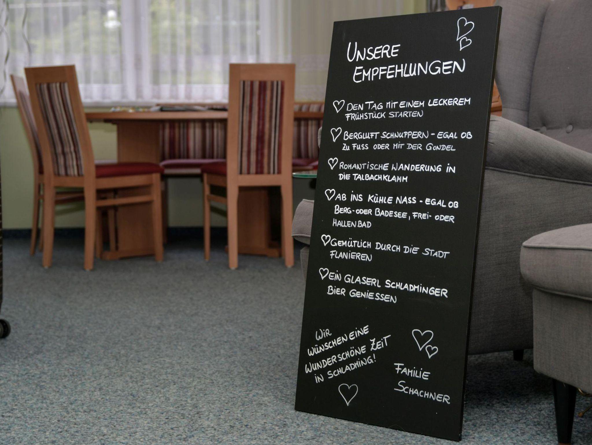 Dank unserer zentralen Lage erreichen Sie die Talstation der Planai in nur wenigen Gehminuten. Im Sommer locken zahlreiche Freizeitmöglichkeiten wie Wandern, Mountainbiken und Downhill-Fahren, die direkt vor der Tür beginnen.