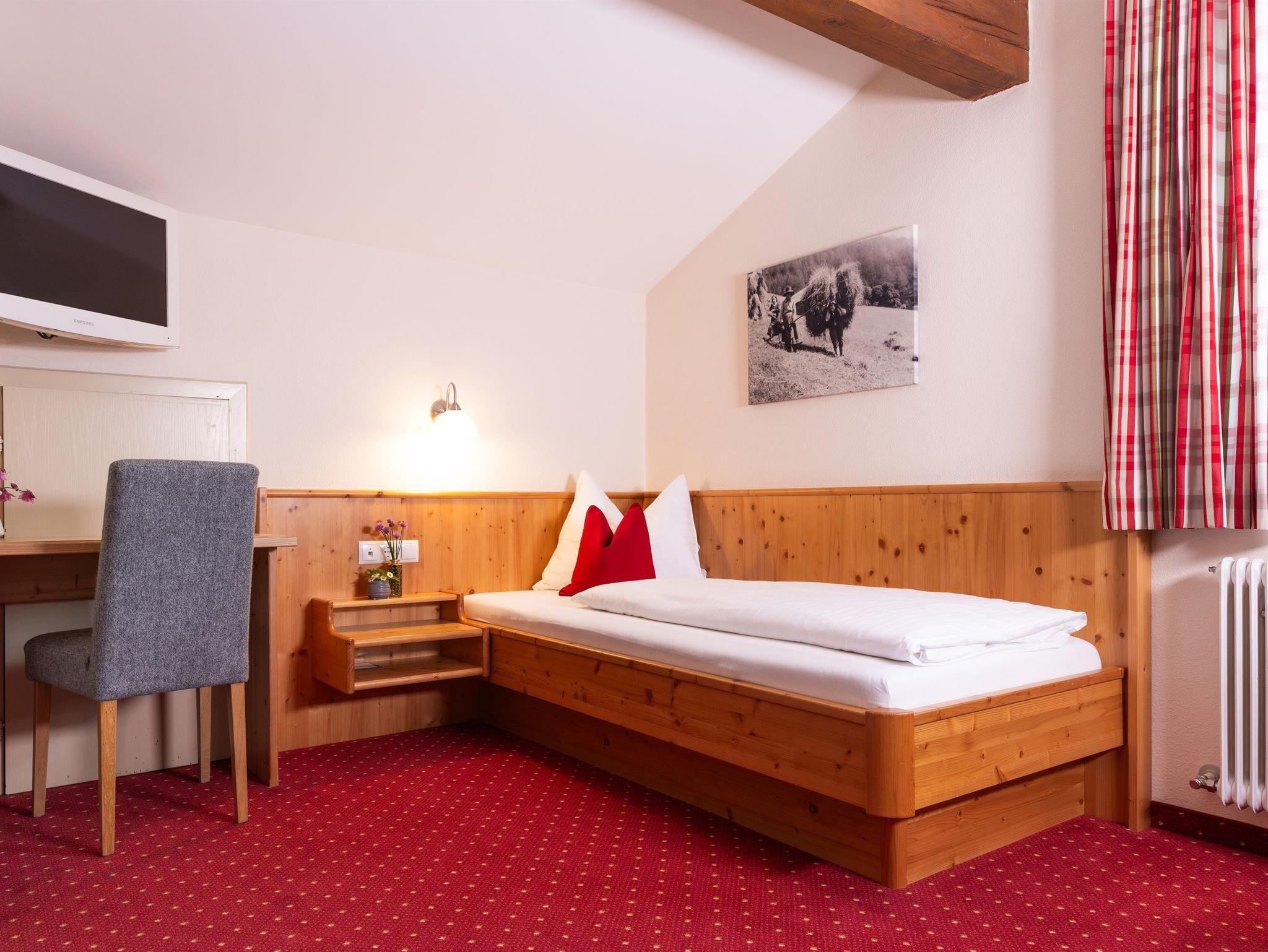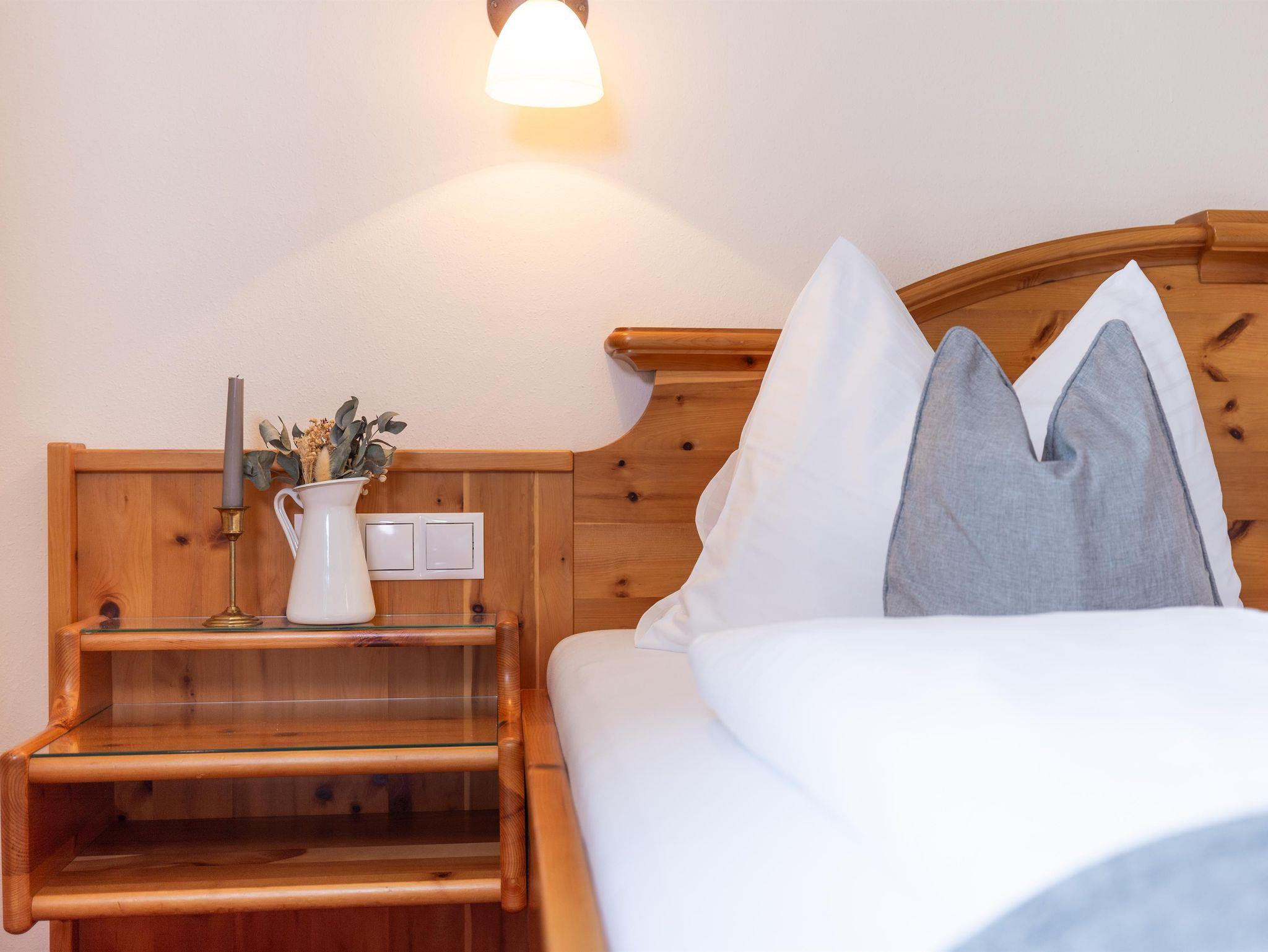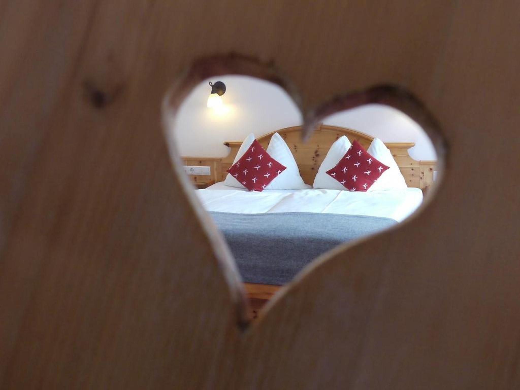 Bei der Einrichtung der Zimmer wurde bewusst darauf geachtet, Materialien aus der Region zu integrieren. So wurden die Möbel aus heimischem Zirben- oder Fichtenholz gefertigt. Die besondere Eigenschaft der Zirbe, den Herzschlag zu verlangsamen, führt dazu, dass Dein Herz sich täglich eine Stunde Arbeit spart und Du erholt in den Tag startest.