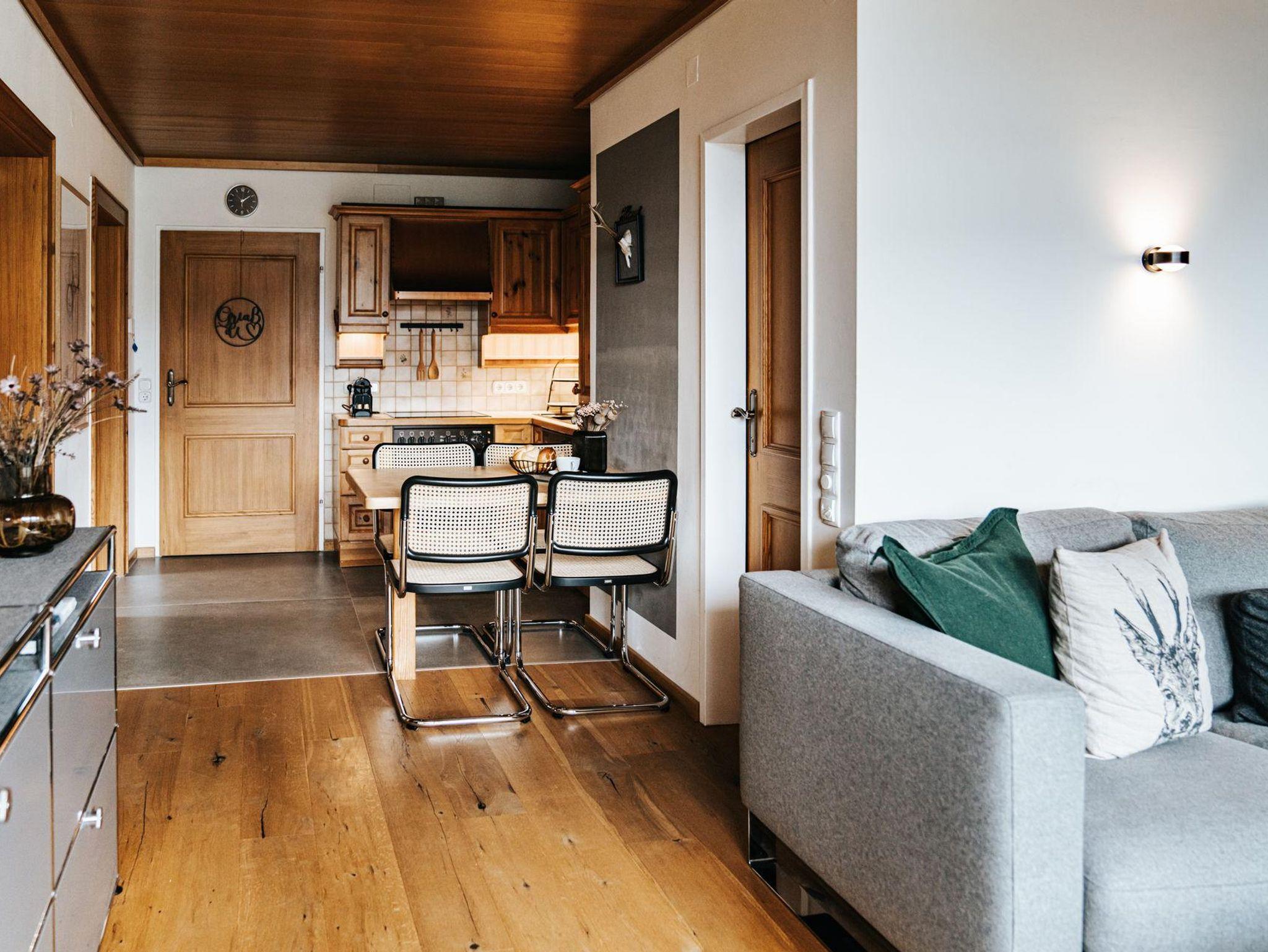 Im ALPINE Appartement 407 erwarten Dich zudem zahlreiche Extras, die Deinen Aufenthalt angenehm gestalten. Neben einem modernen kleinen Bad mit Dusche/Badewanne findest Du einen Flachbildfernseher, kostenloses WLAN sowie bereitgestellte Handtücher und Bettwäsche – alles inklusive, damit Du Dich rundum wohlfühlen kannst. Des weiteren steht Dir eine Waschmaschine im Appartement zur Verfügung. Im Haus findet sich ein Hallenbad und eine Sauna zur gemeinschaftlichen Nutzung.