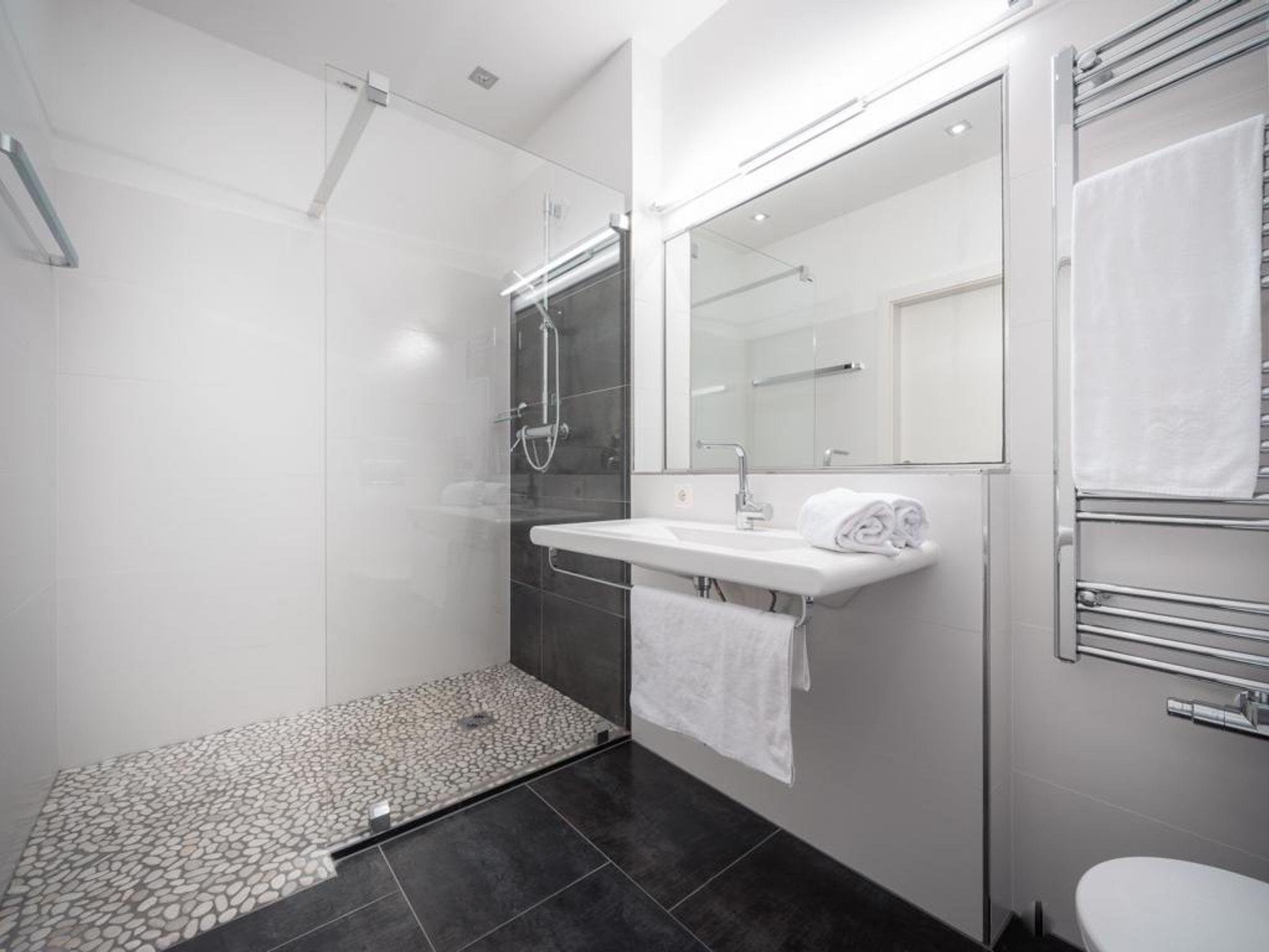 Das geräumige Appartement bietet Platz für bis zu 6 Personen mit 2 Schlafzimmern mit Doppelbetten und einem Schlafzimmer mit 2 Einzelbetten. Das Appartement umfasst ein geräumiges Badezimmer mit Dusche und WC sowie ein zusätzliches WC. Ein Flachbild-TV, kostenloses WLAN, Bettwäsche und Handtücher sind für Deinen Komfort vorhanden.