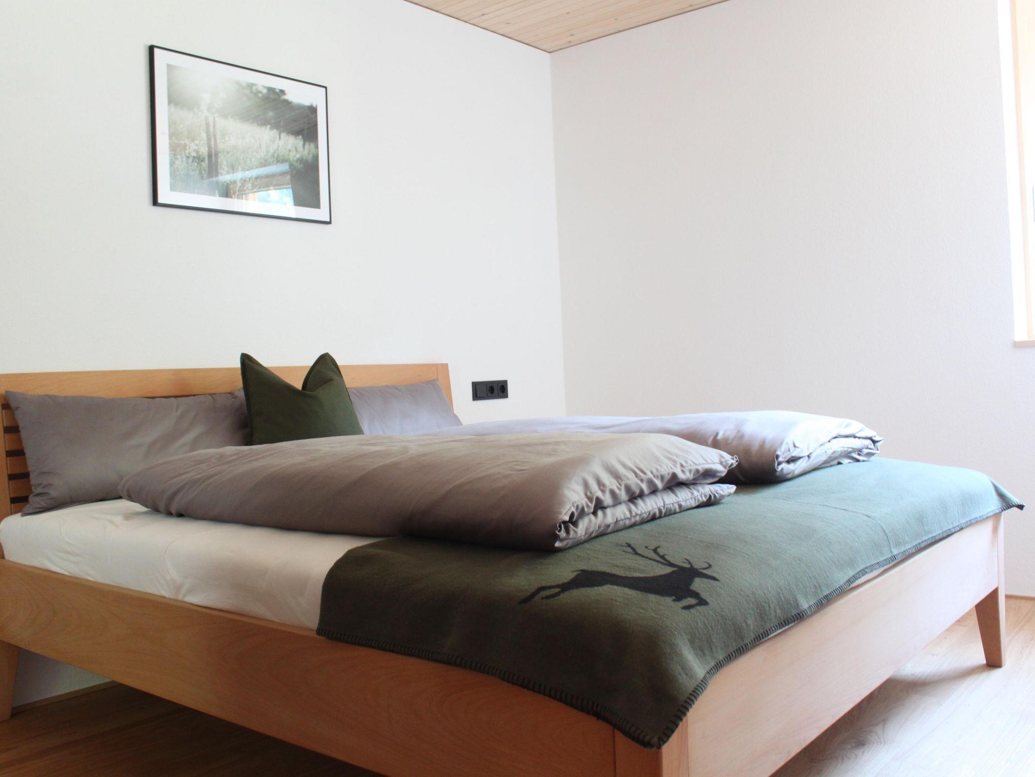 Das große Schlafzimmer ist mit einem Doppelbett ausgestattet und bietet genügend Platz für ein Beistellbettchen.