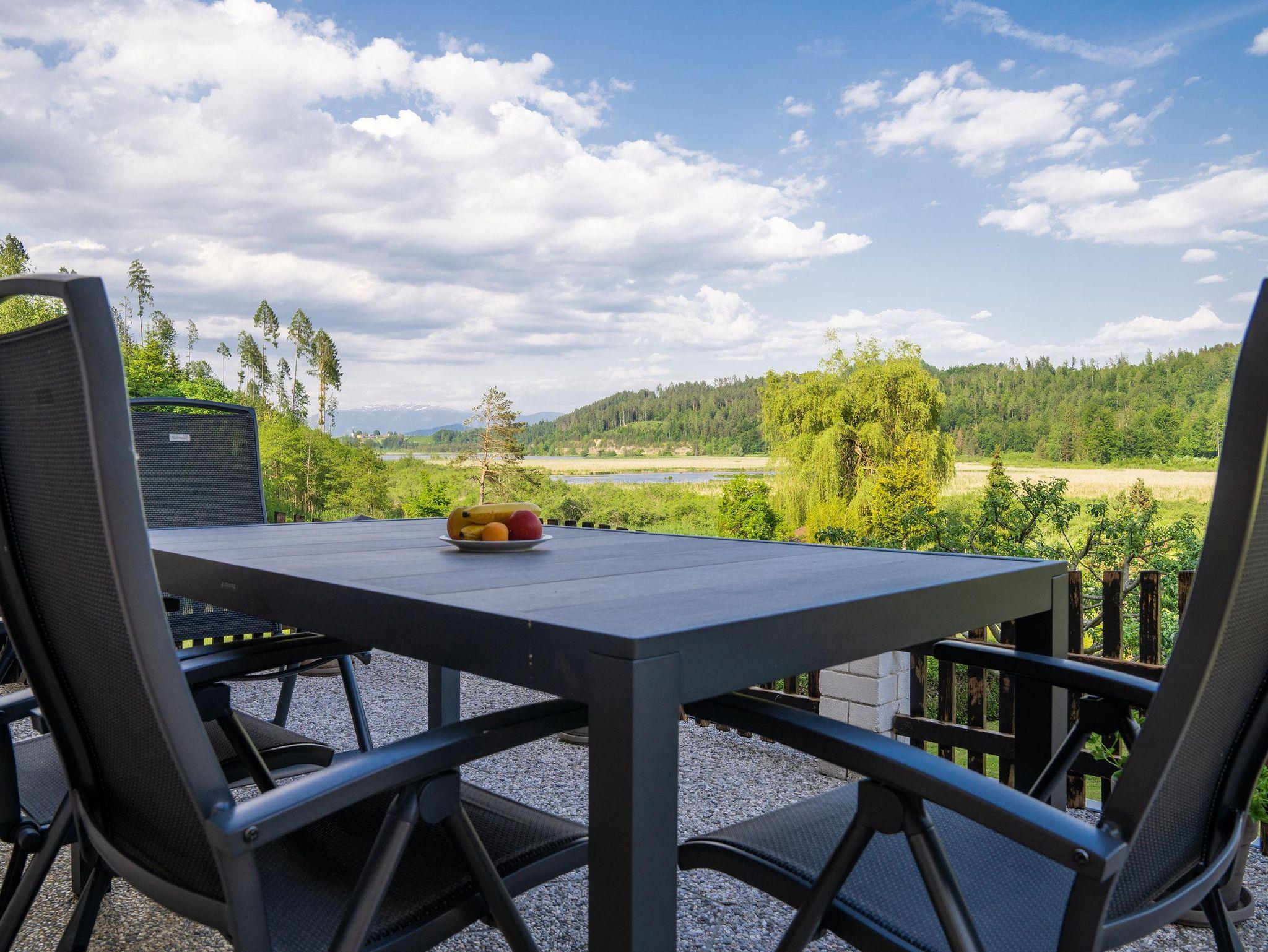 • Im Garten gibt es einen Sitzplatz mit Tisch, Stühlen, Grill, Hollywoodschaukel und wunderschönem Seeblick