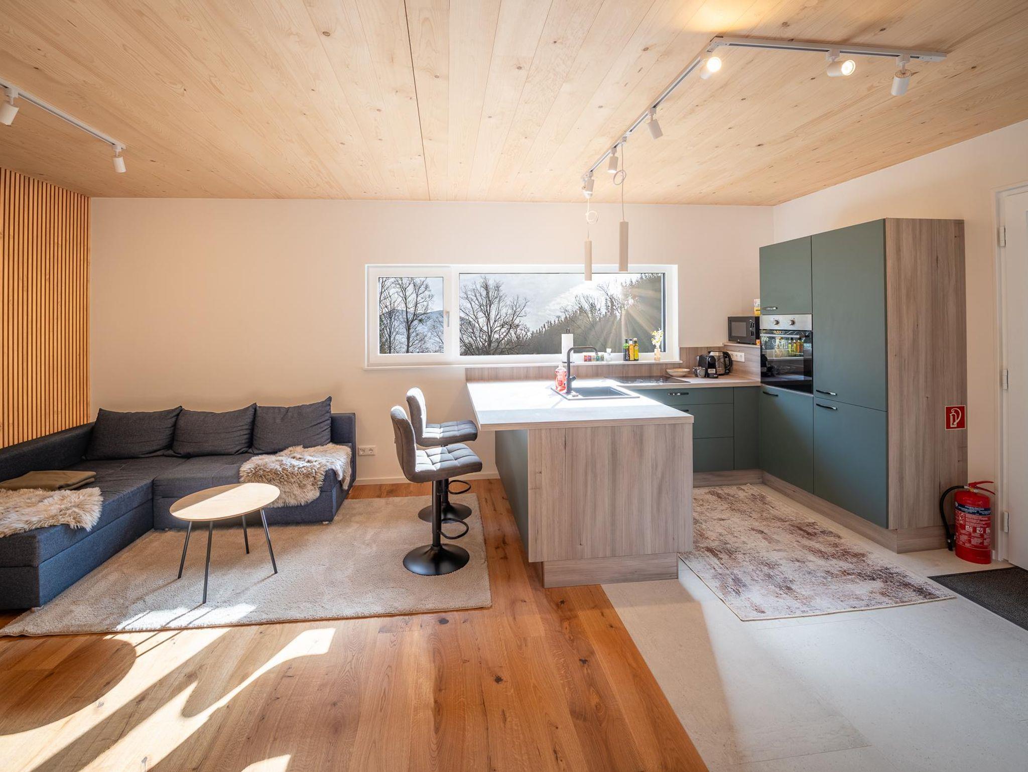 Helle und moderne 1 Zimmerwohnung, perfekt für Pärchen oder Singles, mit schönem Wohn- und Essbereich. Die Küche ist Ausgestattet mit einem Kühlschrank , einem E-Herd, Backofen und Geschirrspüler. Geschirr inkl. Kindergeschirr und viele weitere Küchenutensilien sind vorhanden. In der Küche gibt es auch eine Kaffeemaschine inkl. gratis Kapseln und einen Wasserkocher. Das Wohnzimmer ist mit einer gemütlichen Couch und einem neuen TV-Gerät mit Internetanschluss und Satelliten-TV ausgestattet. Der Essbereich bietet Platz für 2 Personen. Das neue und moderne Bad befindet ist mit einer Regenwalddusche ausgestattet. Das Schlafzimmer ist mit einem Doppelbett mit hochwertigen Matratzen, Nachtkästchen und einem Kleiderschrank ausgestattet