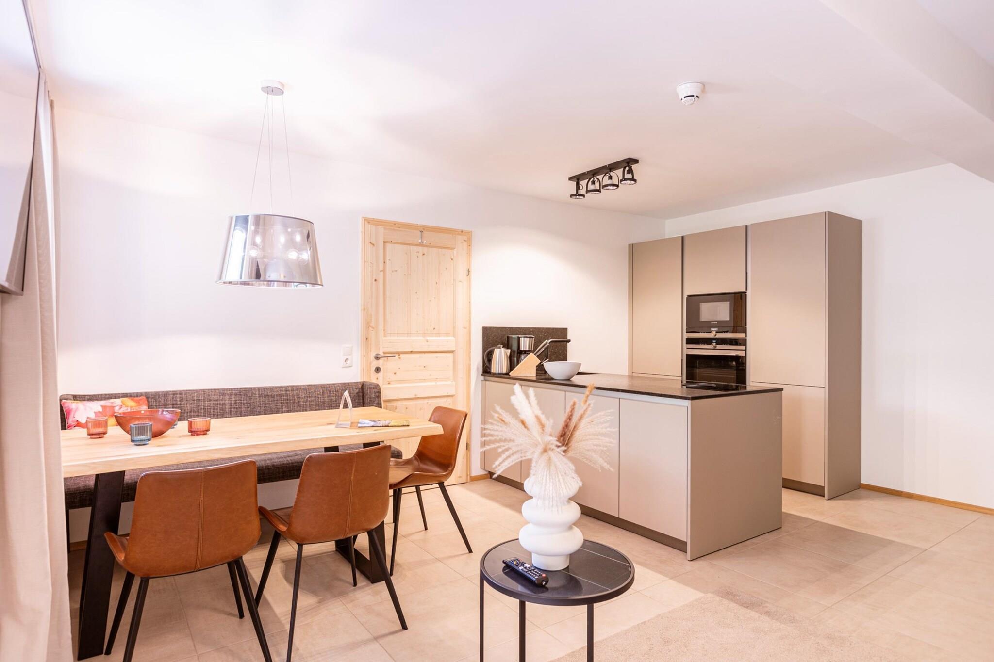 Entdecken Sie Komfort und Eleganz in unserem Apartment im Erdgeschoss, das für bis zu 6 Gäste ausgelegt ist. Auf 55 m² bietet dieser stilvolle Rückzugsort die perfekte Mischung aus modernen Annehmlichkeiten und ruhiger Umgebung. Das Apartment verfügt über zwei einladende Schlafzimmer, die jeweils mit bequemen Boxspring-Doppelbetten ausgestattet sind und einen erholsamen Aufenthalt gewährleisten. Zwei gut ausgestattete Badezimmer verfügen über Duschen, Toiletten und Haartrockner. Entspannen Sie sich im geräumigen Wohn-Essbereich, der eine gemütliche Sitzgruppe und einen Flachbildfernseher umfasst. Der Wohnbereich verfügt außerdem über ein Schlafsofa für 2 Personen, ideal für zusätzliche Gäste. Gehen Sie vom Wohnbereich auf die Terrasse, um die frische Luft und die Aussicht zu genießen. Die voll ausgestattete Küche ist ein kulinarischer Genuss, komplett mit Besteck, Kochgeschirr, einem Cerankochfeld, einem Backofen, einem Kühlschrank mit Gefrierfach und einem Geschirrspüler. Zu den weiteren Annehmlichkeiten gehören ein Toaster, ein Wasserkocher und eine Kaffeemaschine. Ein Starterset mit Spülmaschinentabs, Geschirrspülmittel, einem Schwamm, Müllbeuteln, Reinigungsmitteln und einem Geschirrtuch steht bei Ihrer Ankunft bereit. Gäste, die mit Haustieren reisen, können Hunde auf Anfrage mitbringen (gegen Aufpreis). WLAN nutzen Sie während Ihres gesamten Aufenthalts kostenfrei. Zusätzliche Ausstattung: - Ruhige Lage am Waldrand - Zugang zu einem allgemeinen Wellnessbereich mit finnischer Sauna und beheiztem Infinity-Außenpool - TennengauPLUS-Card inklusive für exklusive lokale Ermäßigungen Öffnungszeiten des Pools: - Winter (01.10. - 30.04.): 16:00 - 19:00 - Sommer (01.05. - 30.09.): 10:00 - 18:00