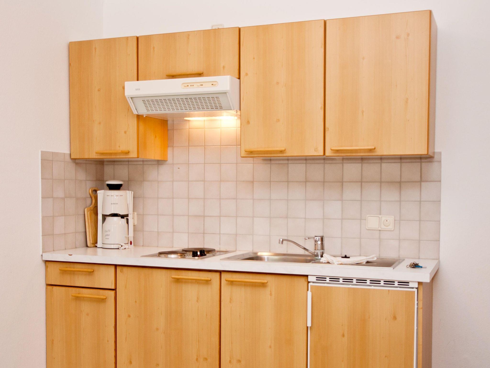 Die Appartements sind im unmittelbar anliegenden Nebenhaus, erbaut in den 90er Jahren, hell eingerichtet mit Voglauer Möbeln. Bodenbeläge teilweise mit Teppich. Appartement bzw. Studio mit Küchenzeile, Esstisch und Doppel-Ausziehcouch mit ca. 29 m² für bis zu 2 Erwachsene und 2 Kinder im 1. bzw. 2. Stock Mit Balkon und Blick Richtung Westen Dusche/WC, Haarfön Kabel-TV , Telefon, WLAN
