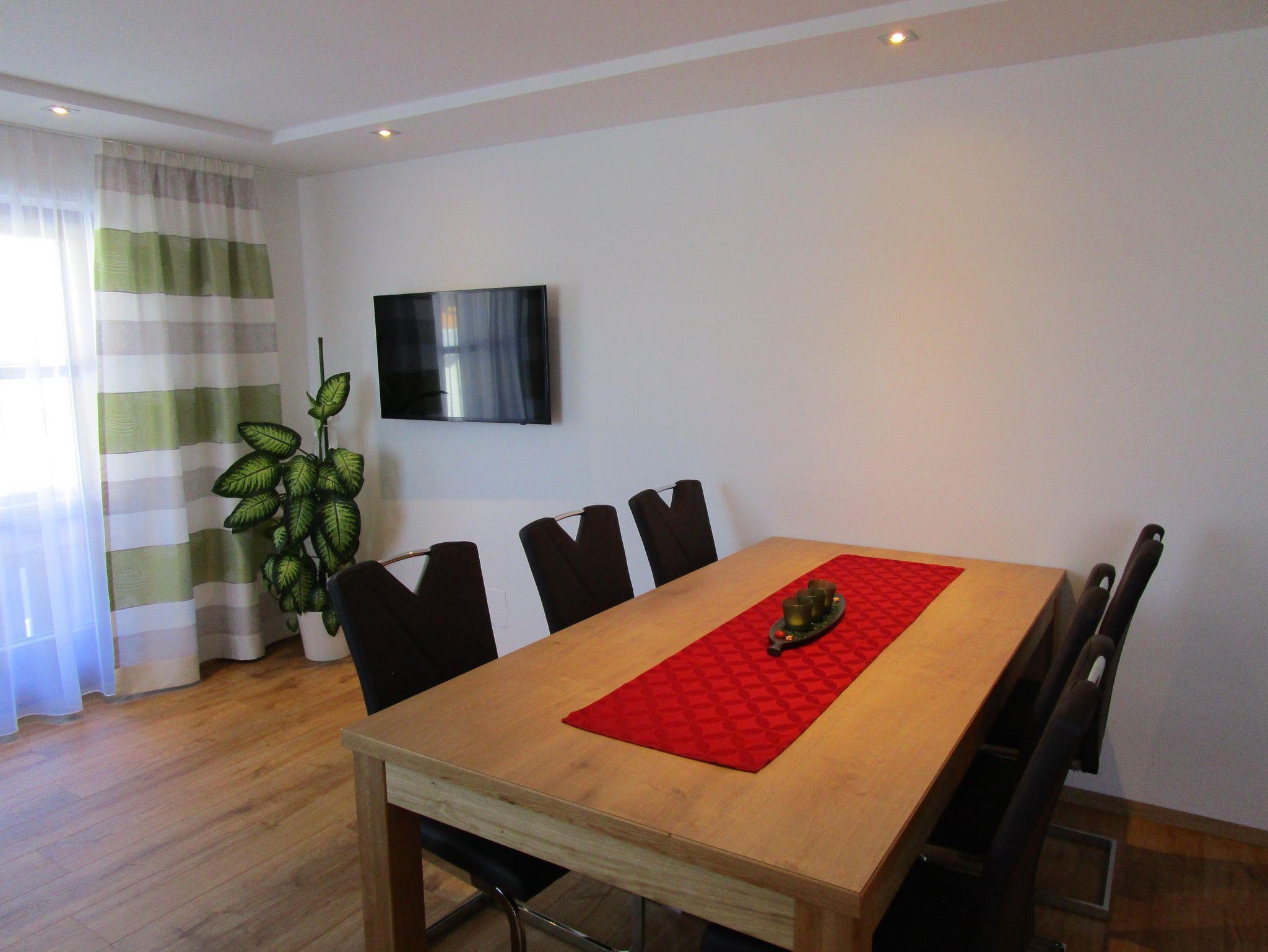 Der Parkplatz vor dem Haus, der wunderschöne Garten mit atemberaubender Sicht auf dem Hochplateau mit Blick in die Hohen Tauern, ein großzügig traditonell eingerichteter Frühstücksraum für lustige Stunden ...