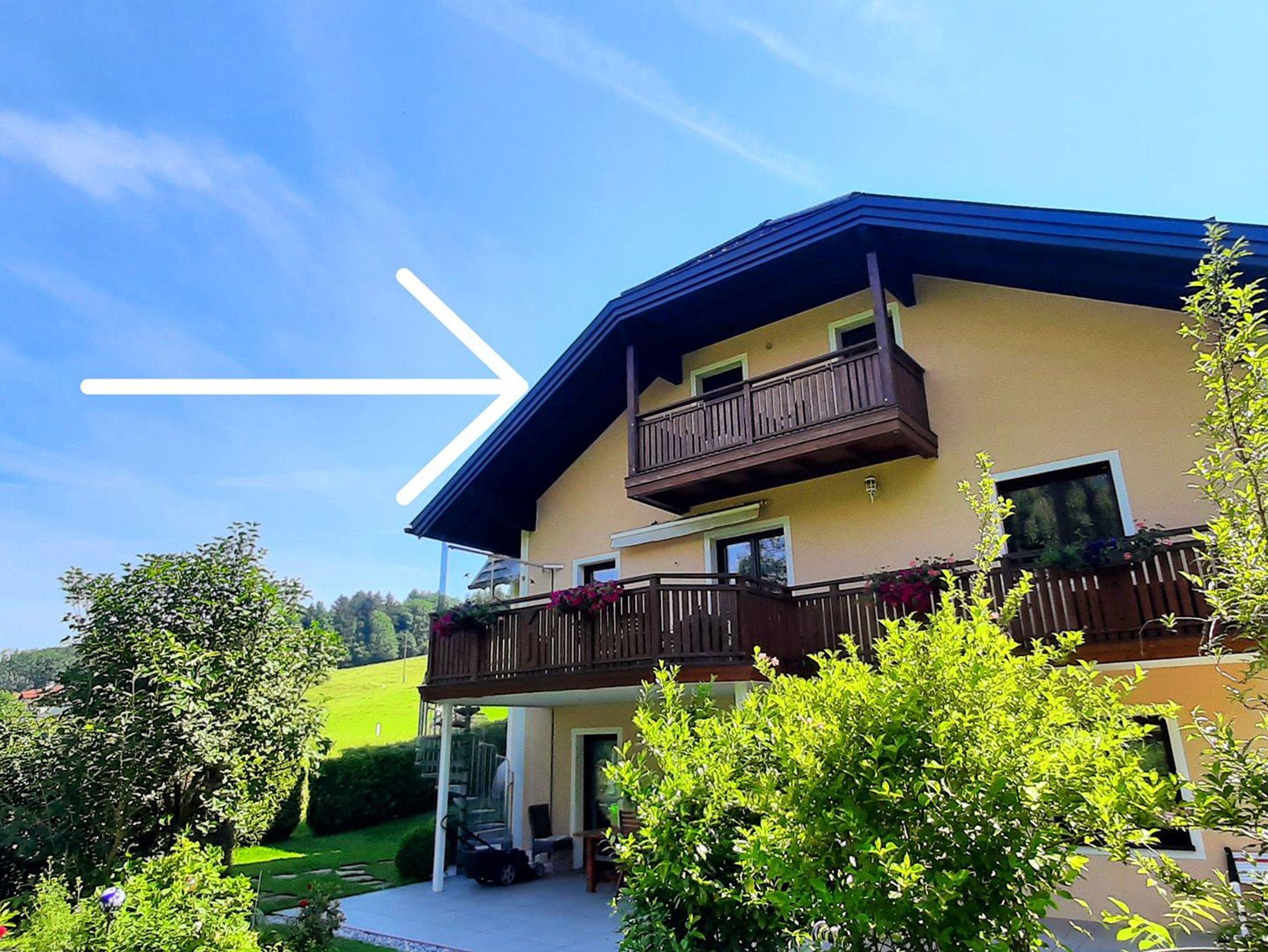 Die 95qm2 große 4Zimmer Wohnung mit Balkon im 1. Stock hat Seeblick und ist 500 Meter vom Irrsee mit seiner kostenlosen Badeanlage entfernt und auch zu Fuß leicht erreichbar durch den direkt vorbeiführenden Geh-Radweg
