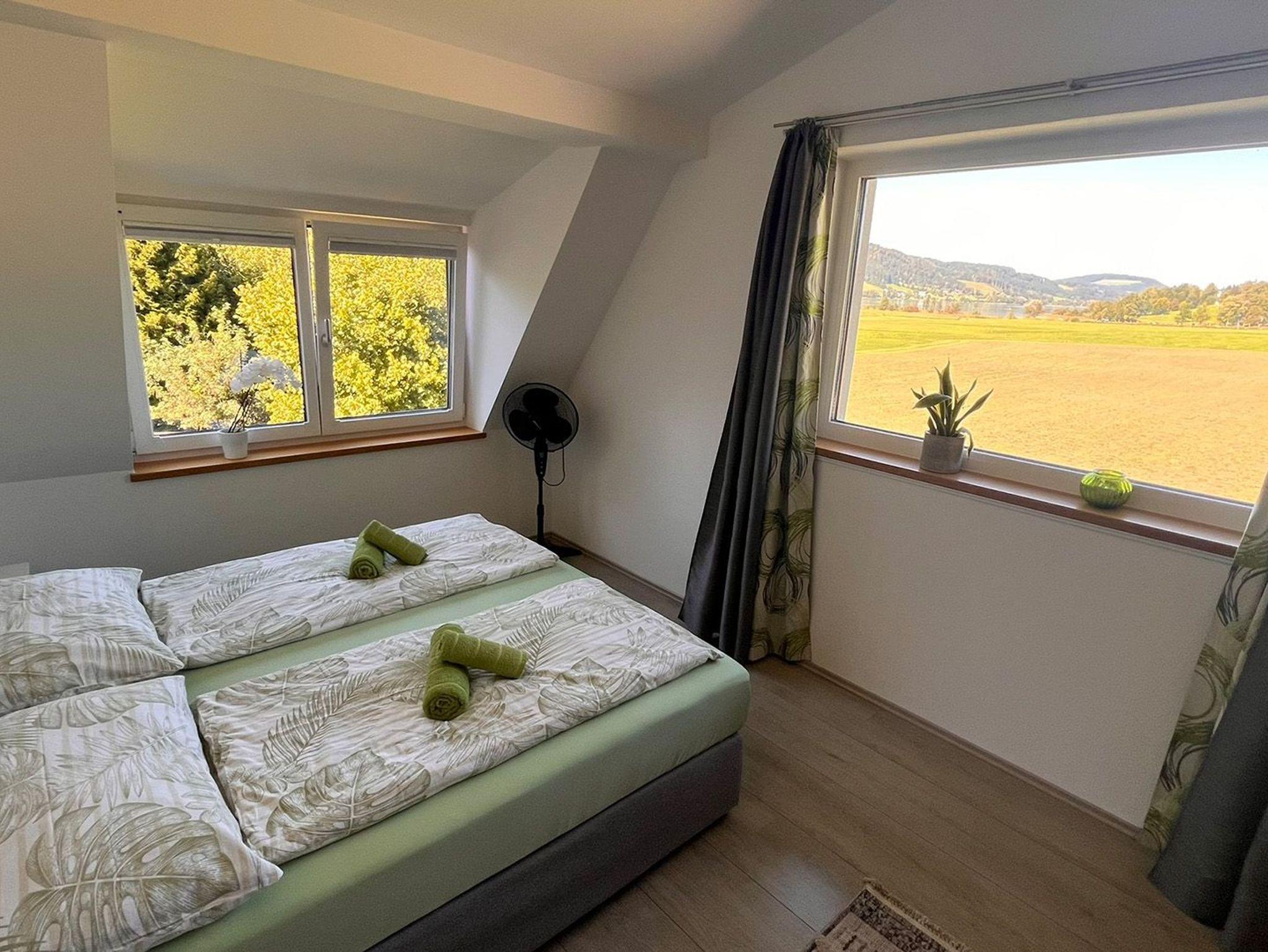 Neue eingerichtete Ferienwohnung mit 90m2 südlich ausgerichtet und 400 Meter vom Strandbad Irssee entfernt, vom Schlafzimmer, Esstisch und Balkon hat man einen schönen Blick zum See, eigener Eingang zum 1. Stock, Badezimmer mit Dusche und Badewanne, bis zu 3 Schlafräume und Abstellraum, mit dem Auto 3 min von der Autobahn entfernt. In nur 2 Minuten sind Sie im Ortszentrum von Zell am Moos mit Einkaufsmöglichkeiten und Restaurant.
