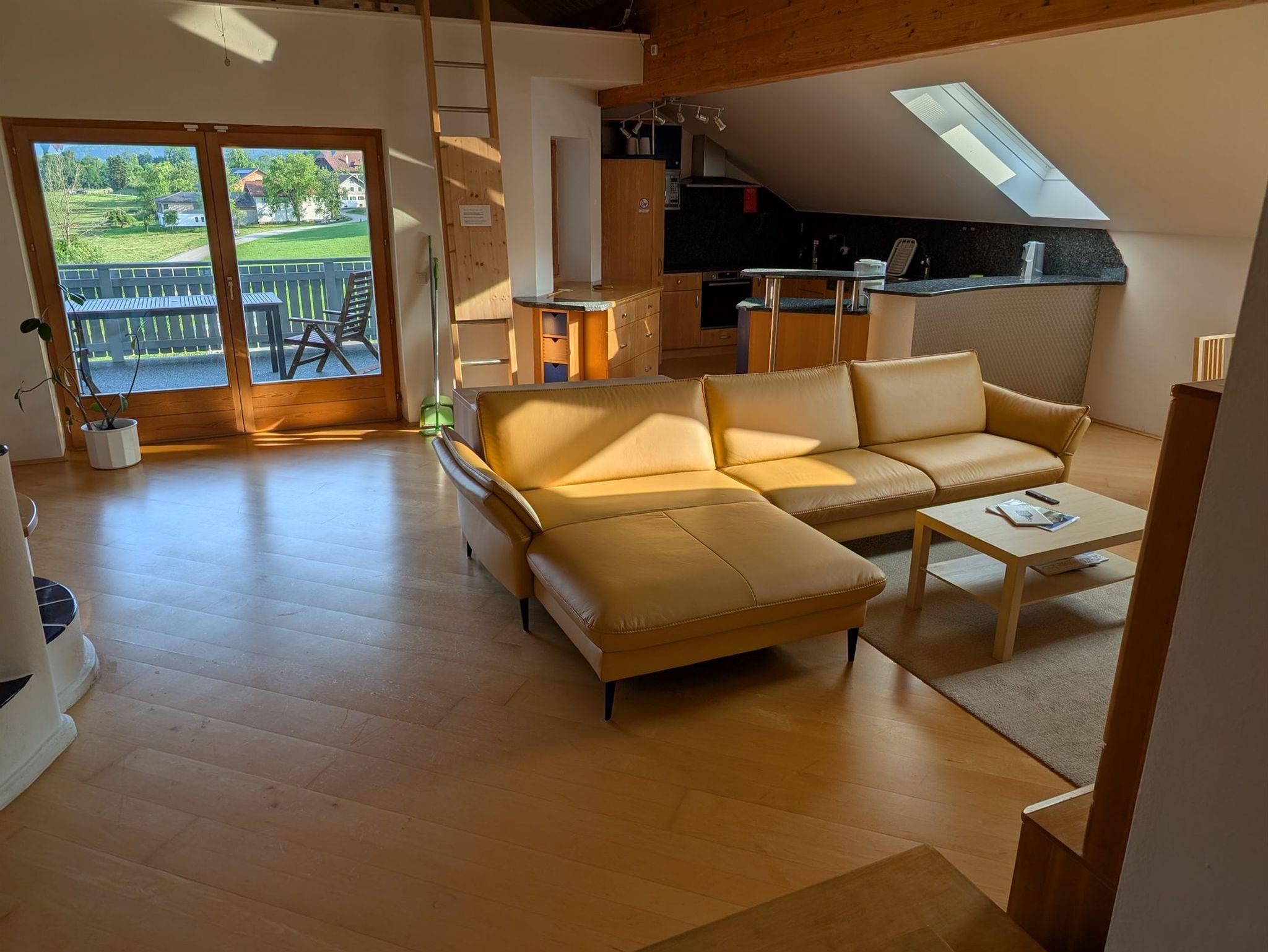 Die Wohnung verfügt über 120 Quadratmeter Fläche und einen 23 Quadratmeter Balkon mit Panoramablick auf den Irrsee, den Schafberg und die Drachenwand. An schönen Tagen sehen Sie bis zum Dachstein.