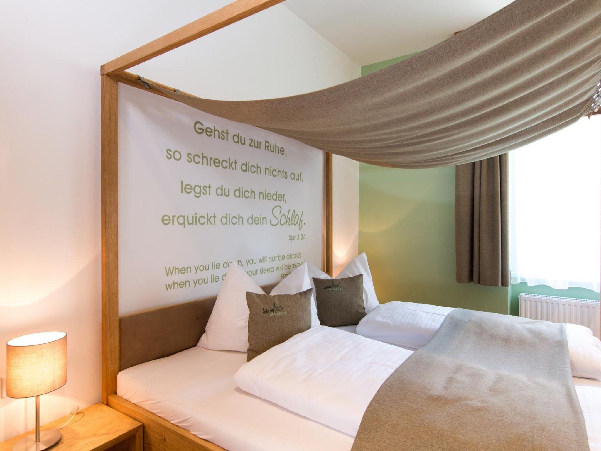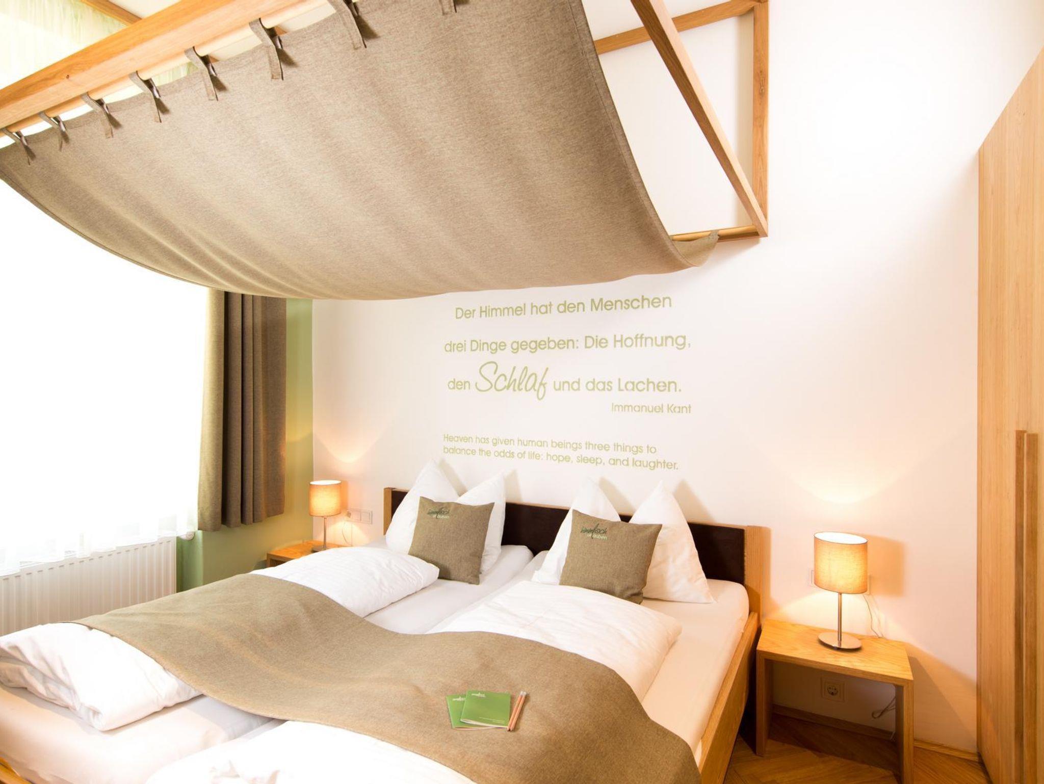 Nach einem behutsamen Umbau und einer Sanierung des Hauses stehen Ihnen seit Ende Mai 2015 vier Appartements im Obergeschoß für eine Auszeit zur Verfügung. Wie in all unseren Häusern wurde auch hier viel Augenmerk auf natürliche Materialien und eine angenehme Wohnatmosphäre gelegt. Zentrales Element aller Appartements sind die Himmelbetten, die teilweise eine überraschende Ausführung aufweisen. Besonderes Highlight ist das Appartement Hl. Dreifaltigkeit, das einen direkten Blick aus dem Wohnzimmer auf den Altar der angrenzenden Kirche ermöglicht.