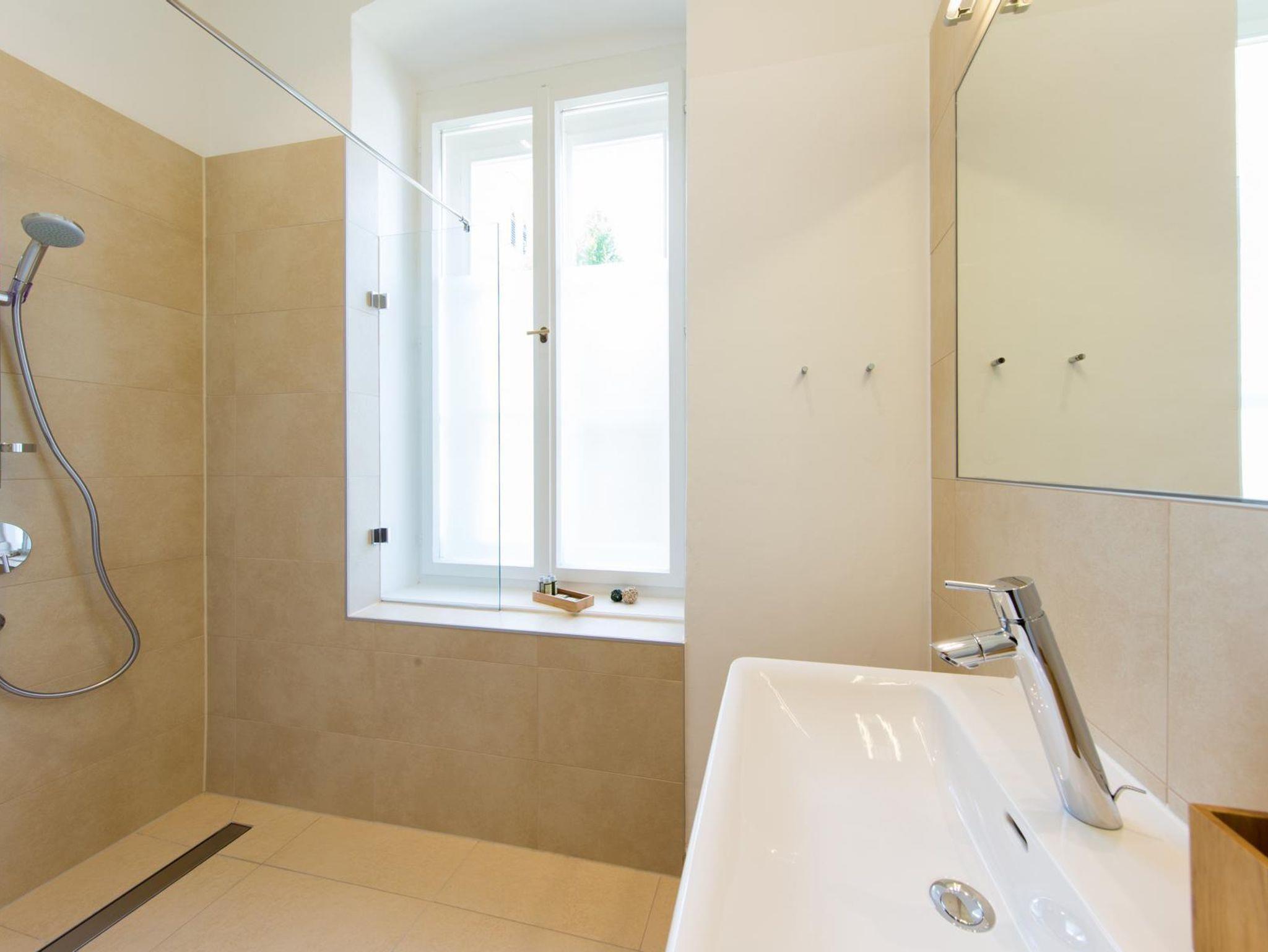 Klein, aber genauso gemütlich Mit „Tau“ verfügen Sie über ein Vorzimmer, ein kleines Badezimmer mit Dusche, eine separate Toilette und getrennte Schlaf- und Wohnzimmer mit Küche.