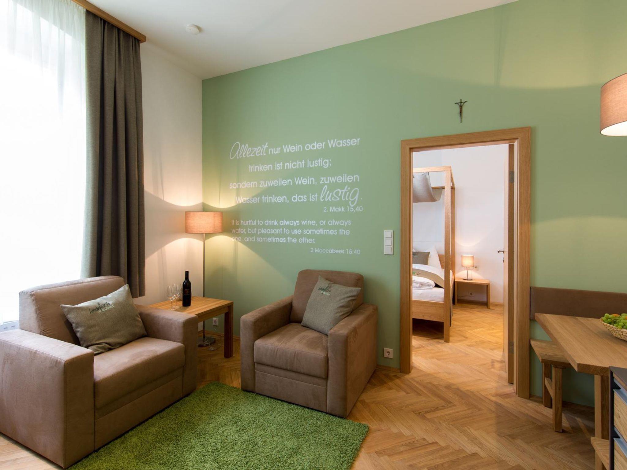 Nach einem behutsamen Umbau und einer Sanierung des Hauses stehen Ihnen seit Ende Mai 2015 vier Appartements im Obergeschoß für eine Auszeit zur Verfügung. Wie in all unseren Häusern wurde auch hier viel Augenmerk auf natürliche Materialien und eine angenehme Wohnatmosphäre gelegt. Zentrales Element aller Appartements sind die Himmelbetten, die teilweise eine überraschende Ausführung aufweisen. Besonderes Highlight ist das Appartement Hl. Dreifaltigkeit, das einen direkten Blick aus dem Wohnzimmer auf den Altar der angrenzenden Kirche ermöglicht.