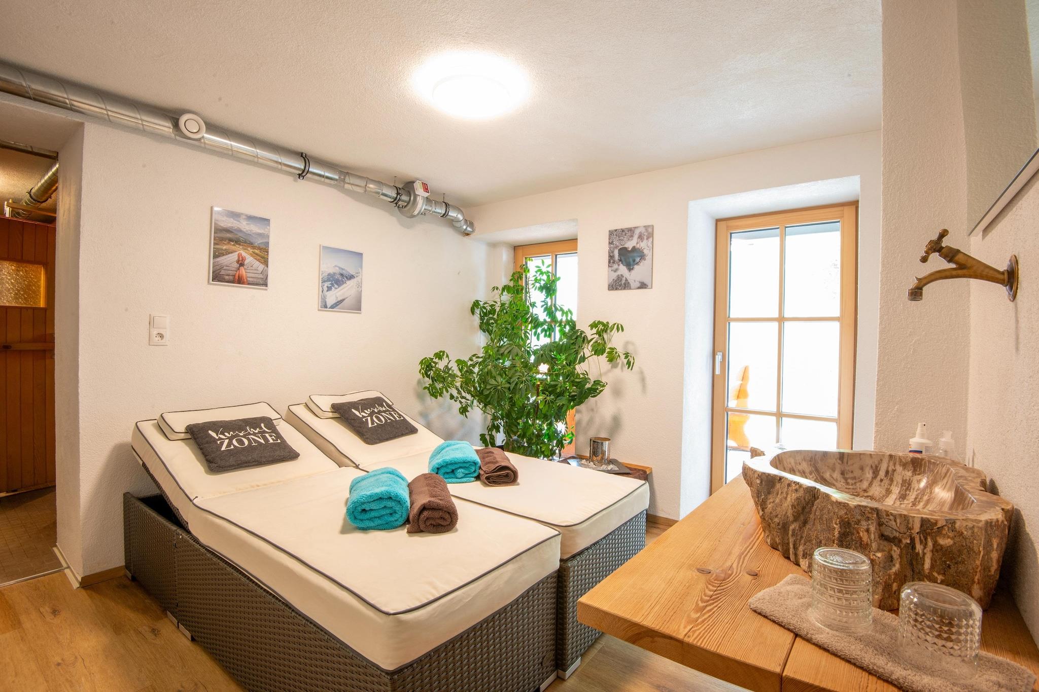 Mit umwerfender Aussicht auf die Berge: Uriger Bauernhof, mit viel Liebe zum Detail frisch renoviert. Der Hof beherbergt dei Ferienwohnungen, die durch ihre wunderschöne Mischung aus modernen und traditionellen Elementen zu einem behaglichen Urlaubs-Zuhause geworden sind. Ein großzügiger Außenbereich mit Sitzgelegenheiten lädt zu entspannten Stunden im Freien ein - hier gibt es auch viel Platz zum Toben und Spielen für Kinder oder für Ihren Vierbeiner. Und nach einem aktiven (Wander-)Tag lässt es sich herrlich in der Gemeinschaftssauna entspannen. Wenn Sie übrigens alle drei Ferienwohnungen mieten, steht Ihnen der ganze Bauernhof allein zu Verfügung - perfekt für einen Urlaub mit Freunden oder einer großen Familie. Info: Die Schlafgalerie im Dachgeschoss ist mit Matratzen für 2 Personen ausgestattet.