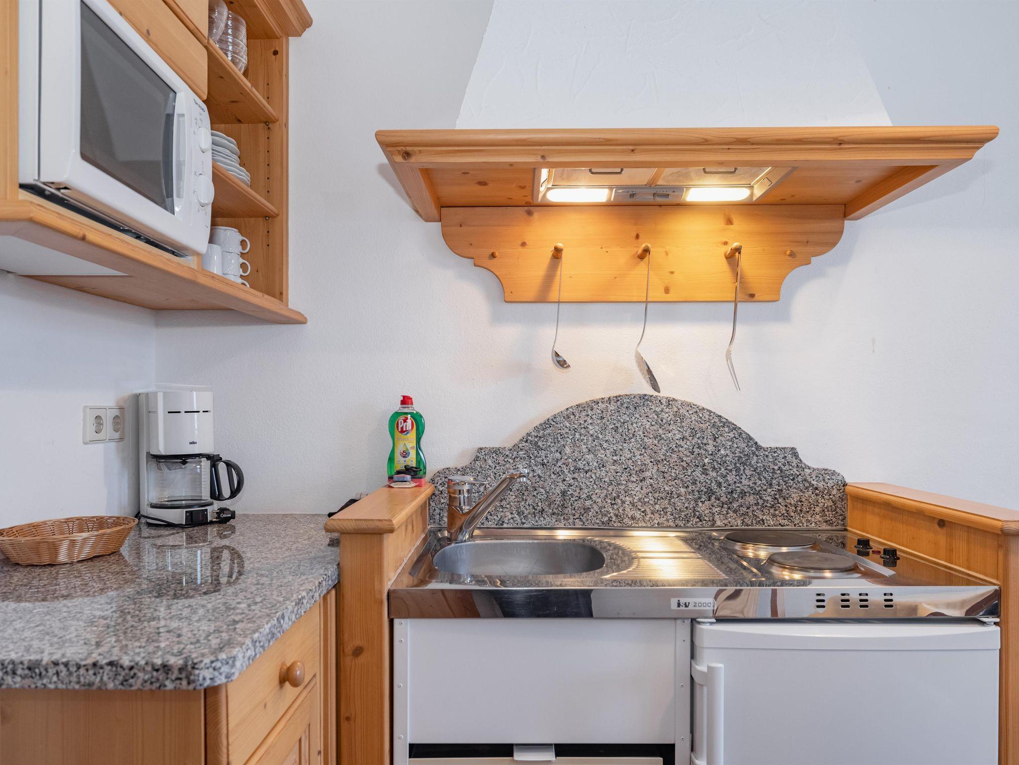 Die Appartements sind ca. 35 m2 groß im Nebengebäude (ca. 50m vom Haupthaus entfernt), haben 1 Schlafzimmer, Dusche/WC, Wohnküche mit ausziehbarer Couch (150x200, auf der die Kinder schlafen könnten), Mikrowelle, Herd, Kaffeemaschine und Kühlschrank mit Gefrierfach, Essecke, 2xSat-TV und Balkon; Nichtraucher