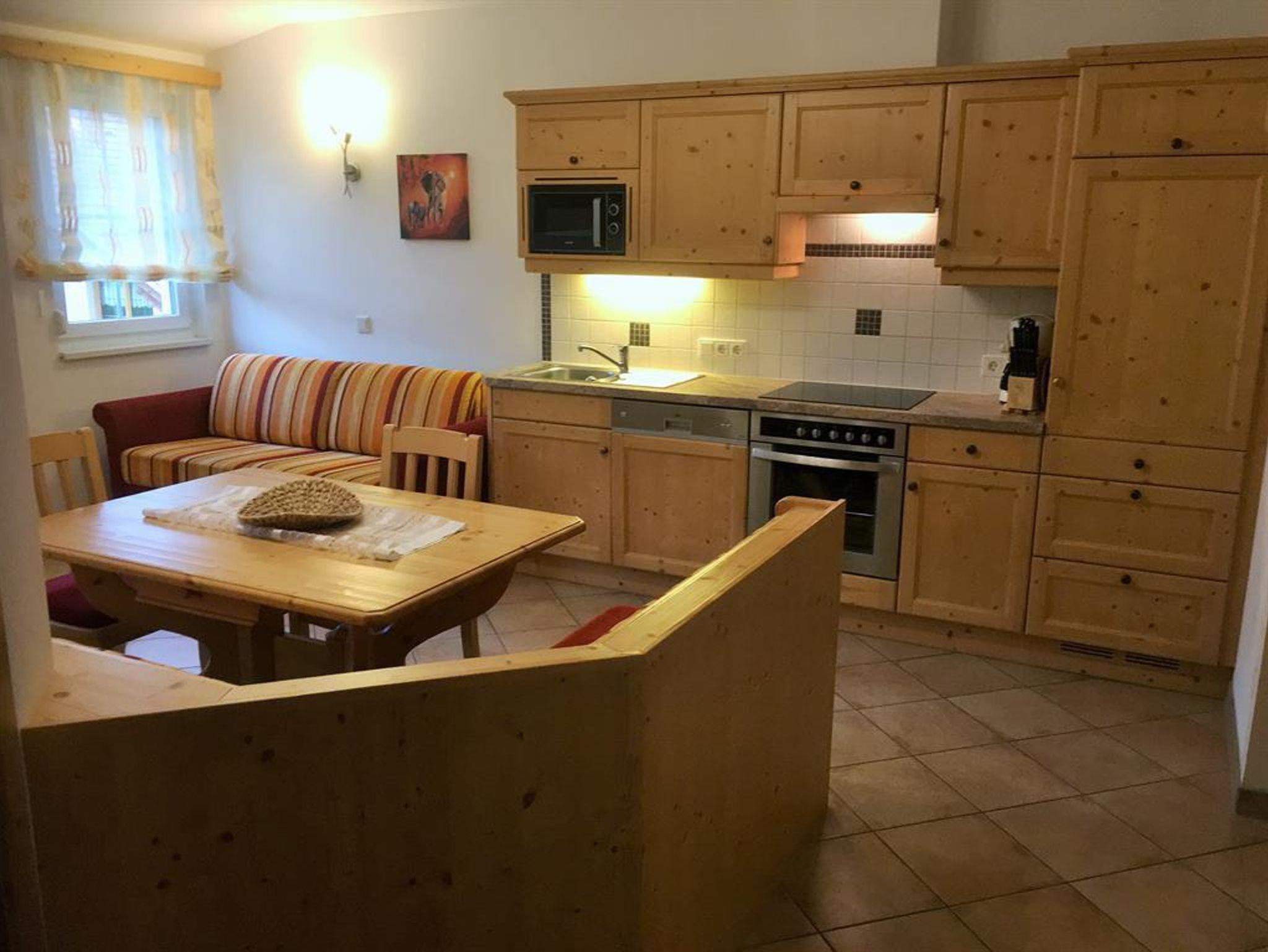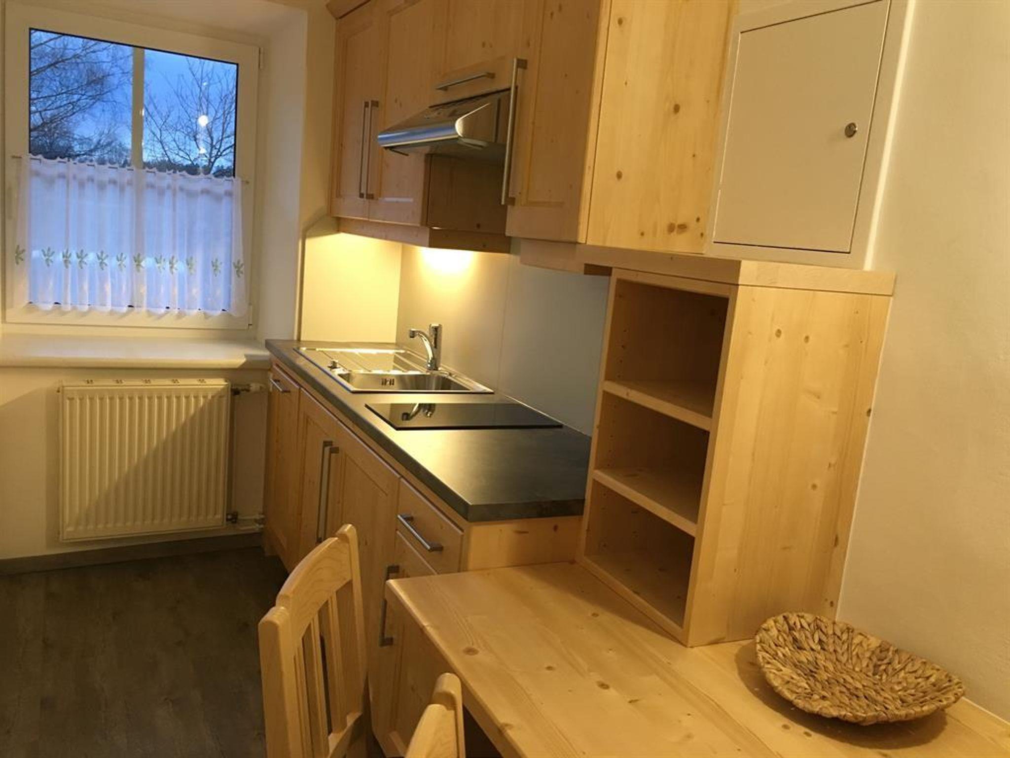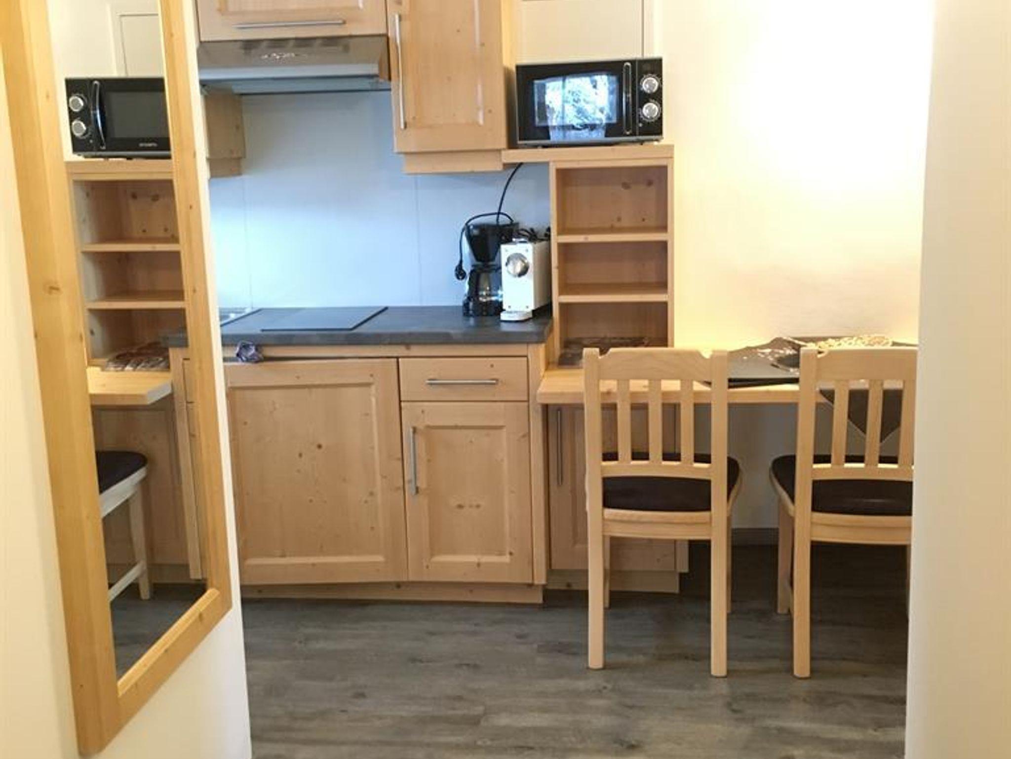 Die Ferienwohnung 4 kann sowohl als Erweiterung zur Ferienwohnung Nr 1 gebucht werden, als auch separat. Sie hat auf rund 40 m² Platz für ein bis zwei - auf Anfrage bis vier Personen. Ein Schlafzimmer für zwei Personen mit einer ausziehbaren Couch für zusätzliche 2 Personen sorgen für einen guten Schlaf. Auch hier gibt es eine Wohnküche voll ausgestatteter Küche. Das Badezimmer verfügt über Dusche und WC.