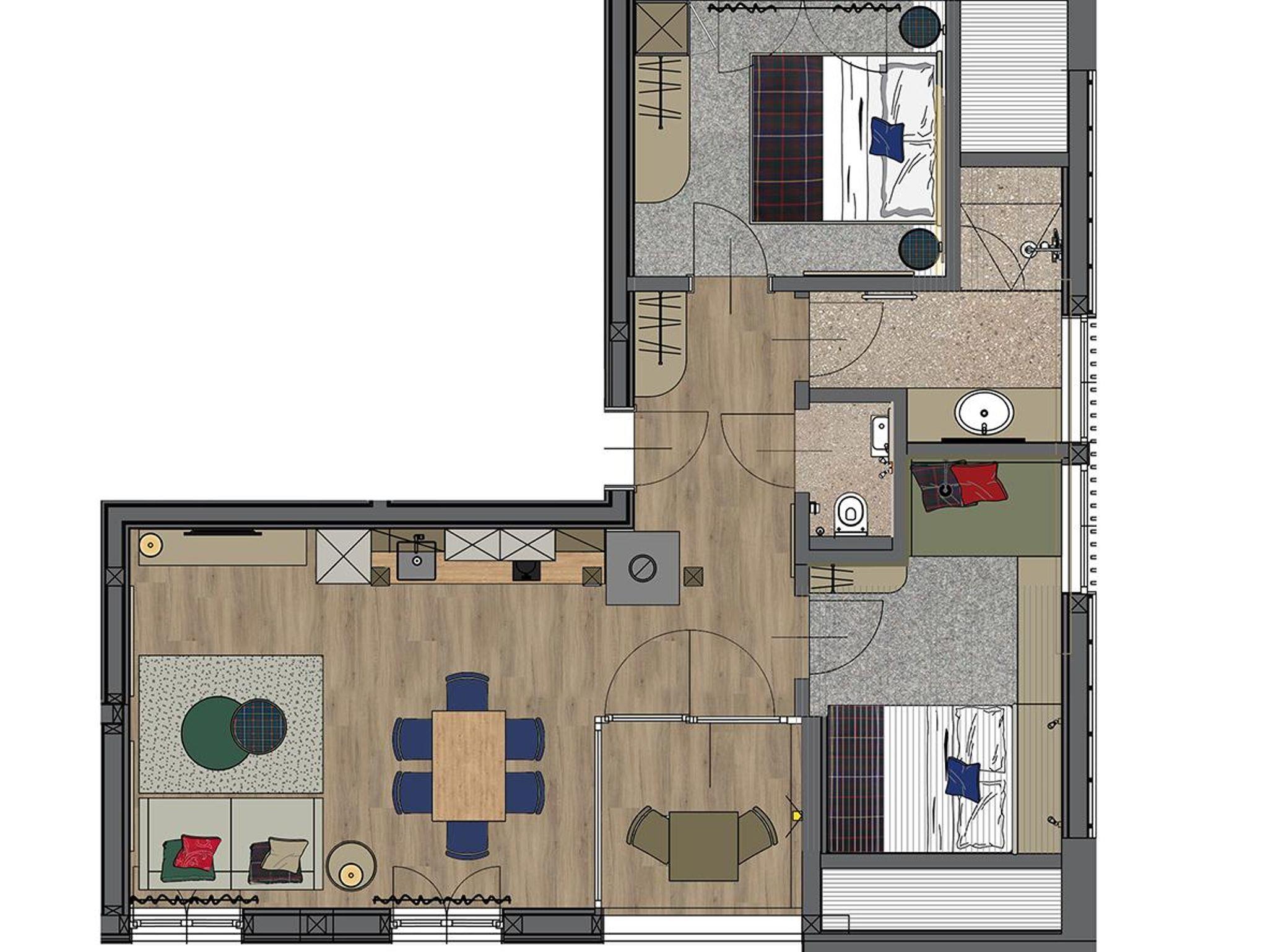 Das gemütliche Appartement Kärnten Karo im 2.Stock mit Mansarde und Akzenten mit dem Kärnten Karo vom Rettl bietet bequem Platz für 4-6 Personen. Auf ca. 60 m² Wohnfläche mit 2 getrennten Schlafräumen, einem gemütlichen Wohn- Schlafraum, einer top ausgestatteten Küche, einem Bad mit separatem WC und einer Loggia, kannst du den Alltagsstress vergessen.