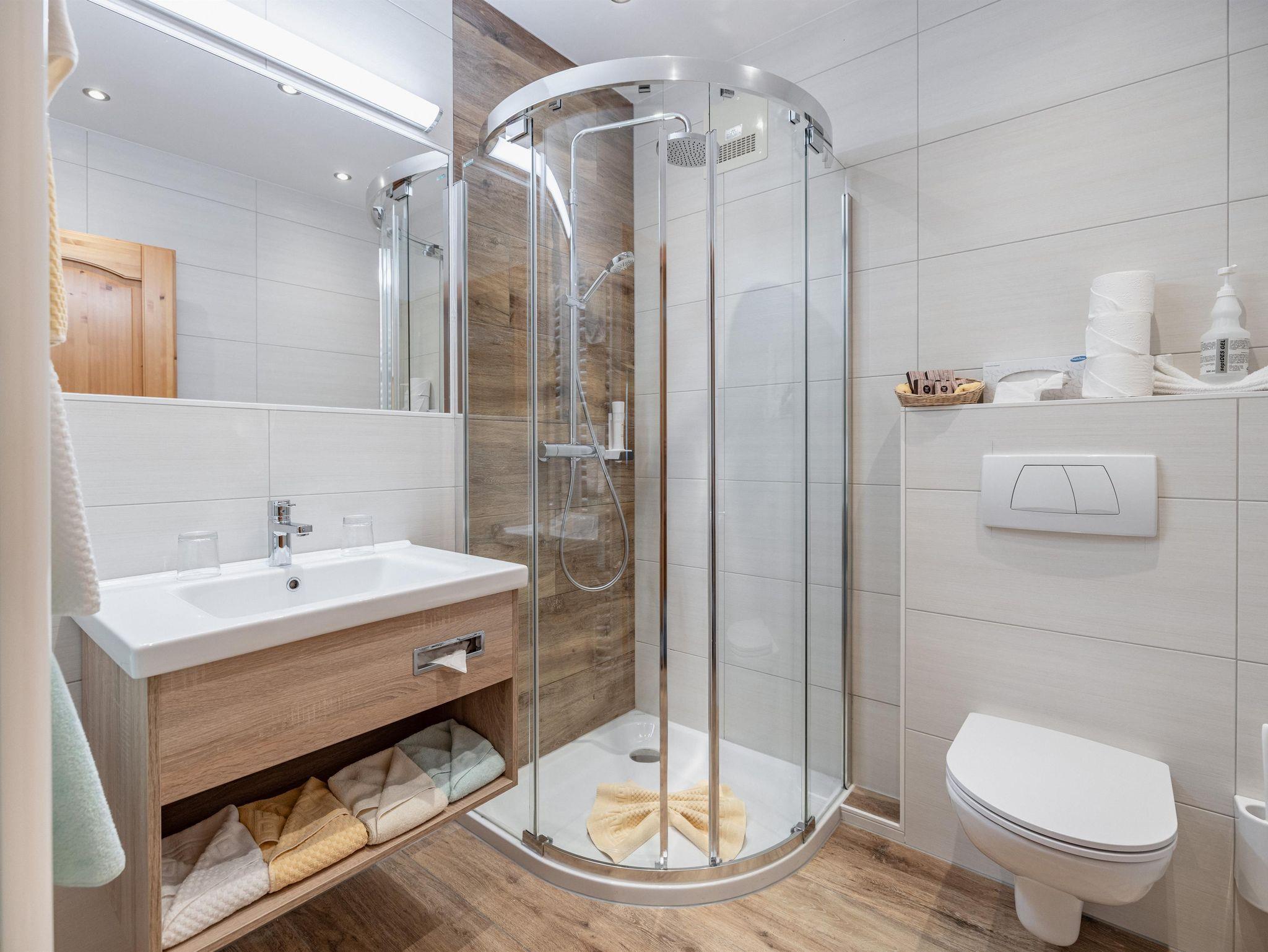 The whole package was just perfect. Location close to Nassfeld ski slope, finely furnished rooms with ground heating in bathroom, saunas in the basemet and really delicious breakfasts and dinners. I do not have any critics. I think that for the high season time and all package you get the price is quite reasonable.