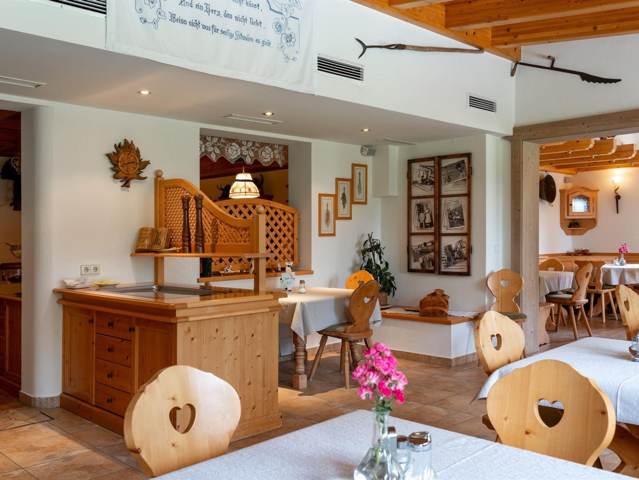 This hotel provides you with very tasty breakfast, very nice rooms and helpful and nice hosts. I liked the view from the room the most, because we had a view over horses. Although it takes you 4minutes by car to get to the ski slopes the location is not so bad, because you can park your car for free in front of the ski lift. We had a really nice stay and would come again.